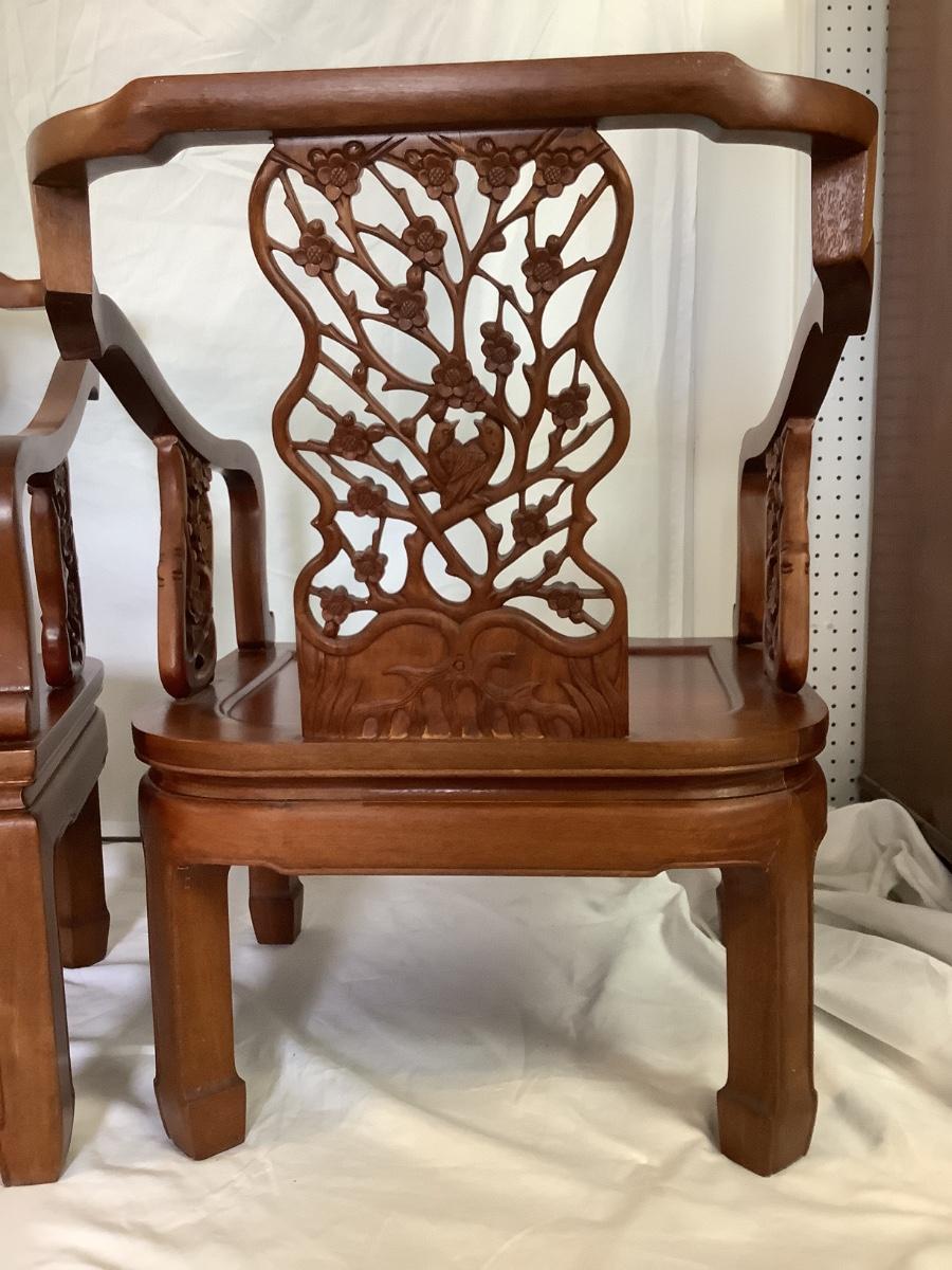 B - 609 Mid Century Modern GEORGE ZEE Mahogany Carved Chinese Chairs