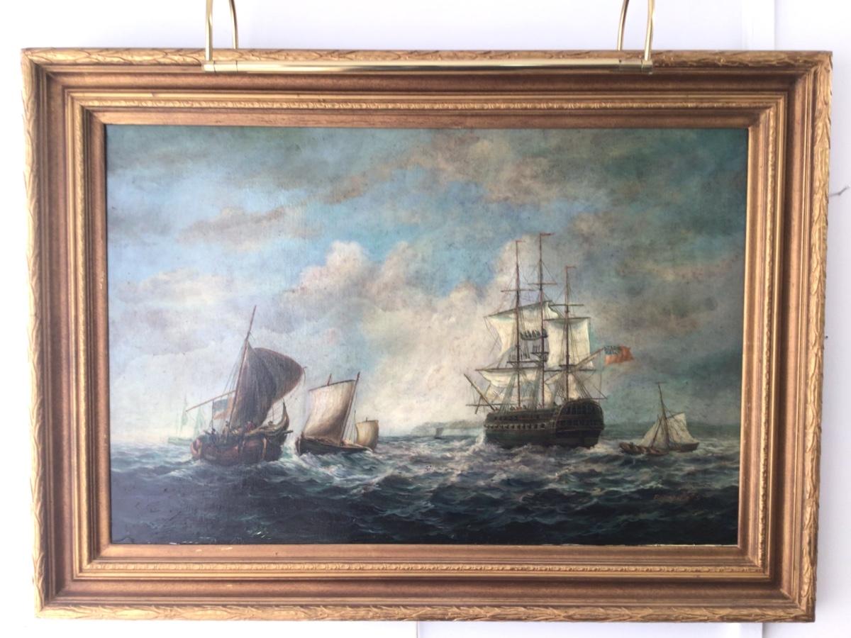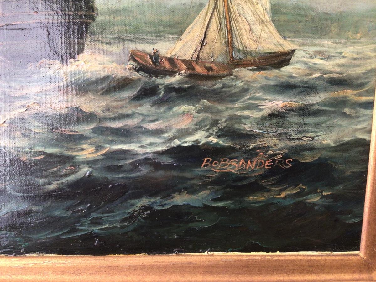 Signed / Framed Oil Painting by Bob Sanders “ Ships at Sea “
