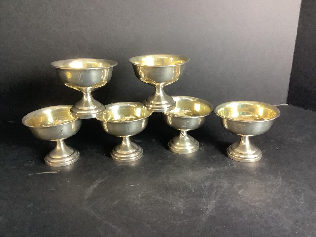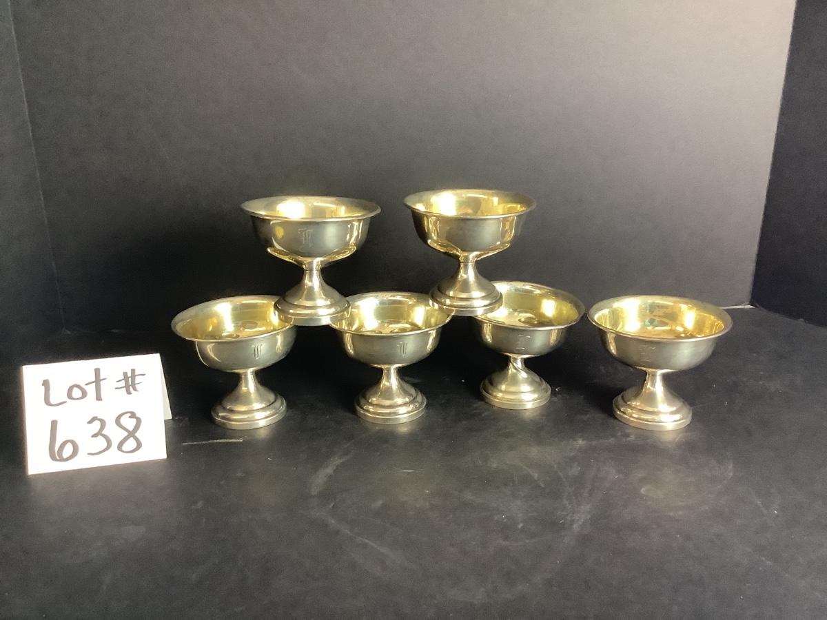 B - 638 Set of Six Sterling Pedestal Desserts with monogram D.