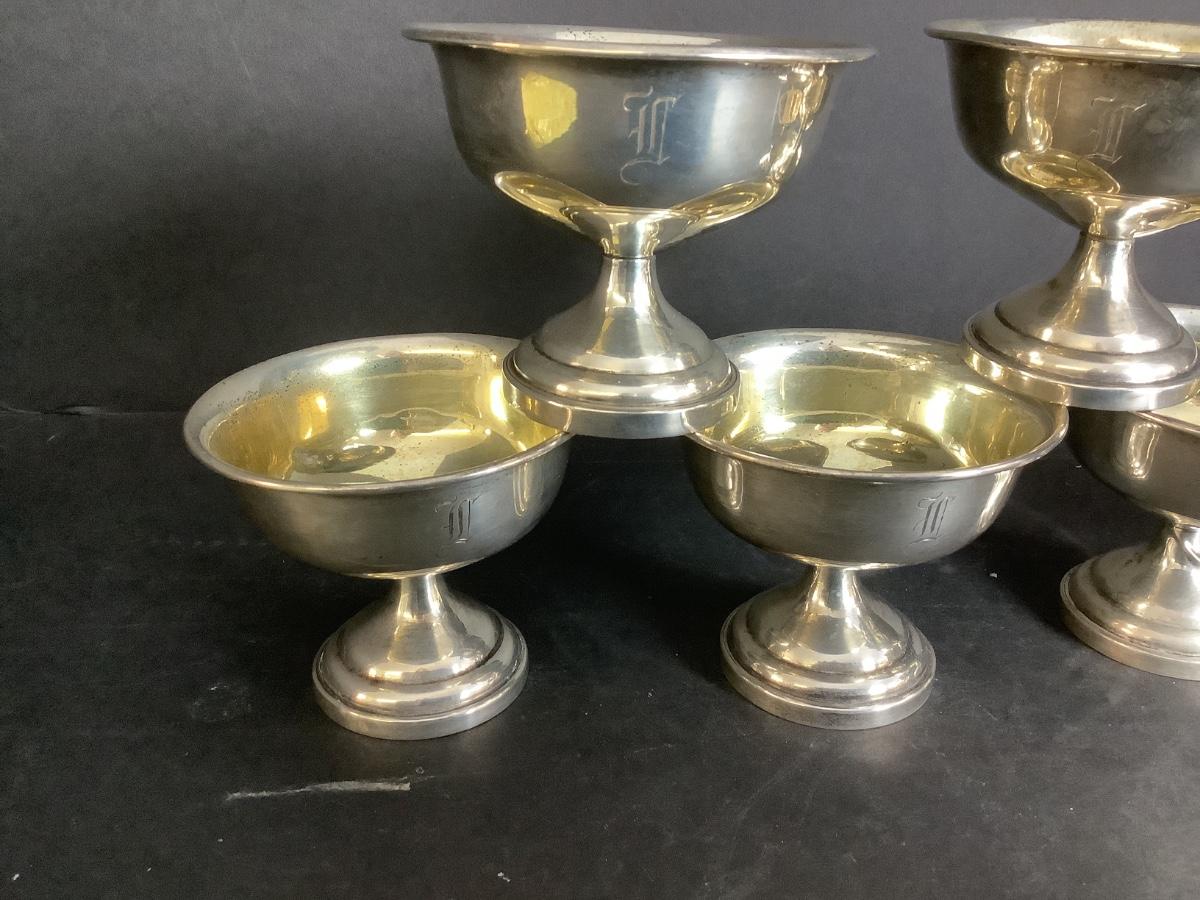 Set of Six Sterling Pedestal Desserts with monogram D. (369g)