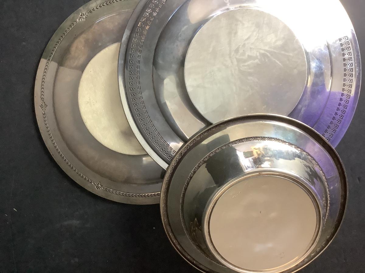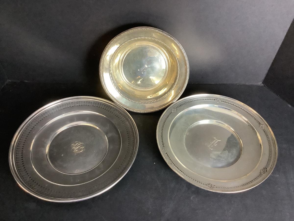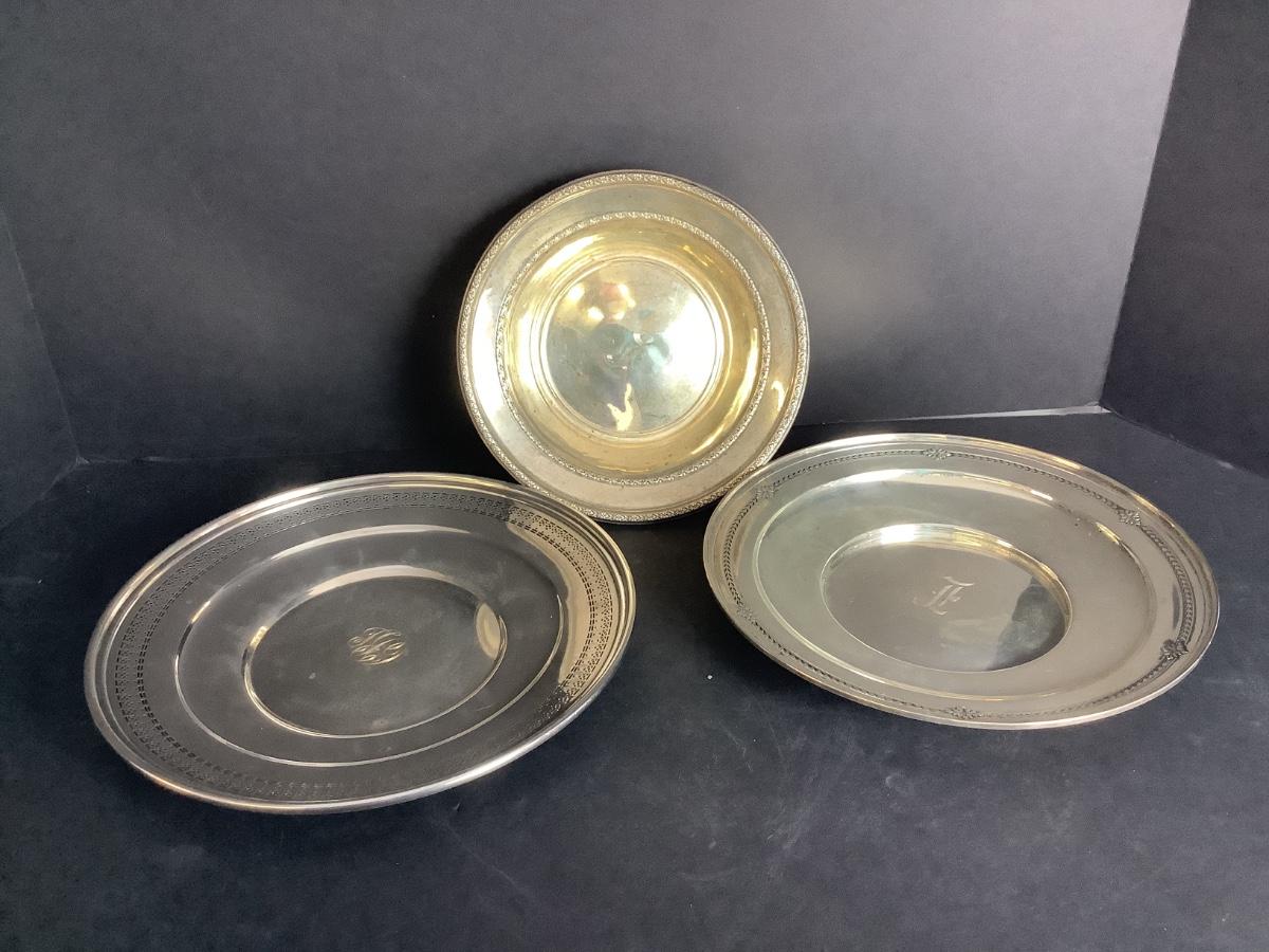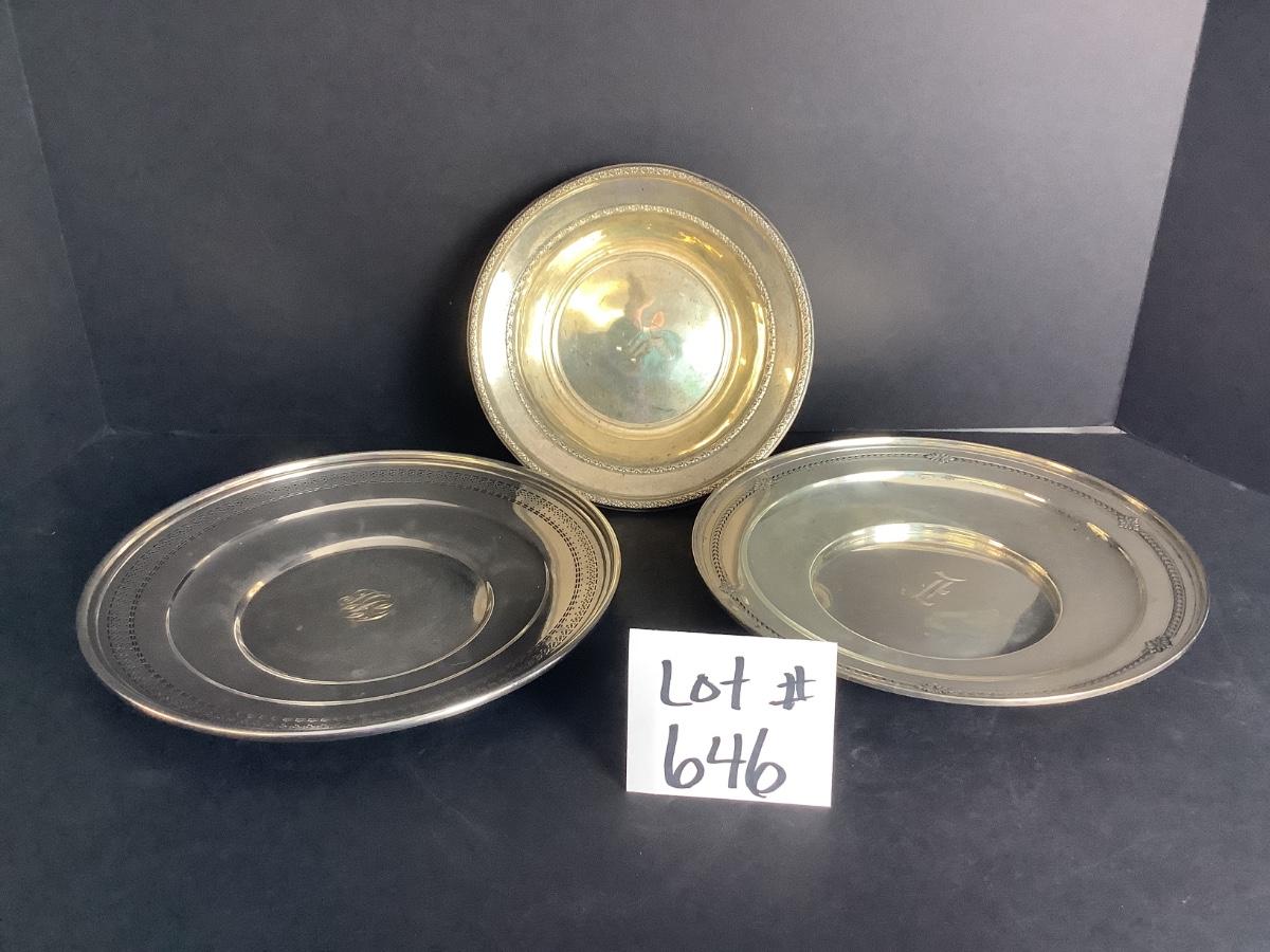 B- 646. Two Sterling Silver Plates & Sterling Silver One Bowl