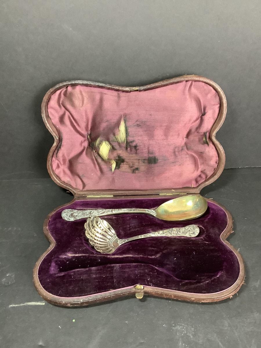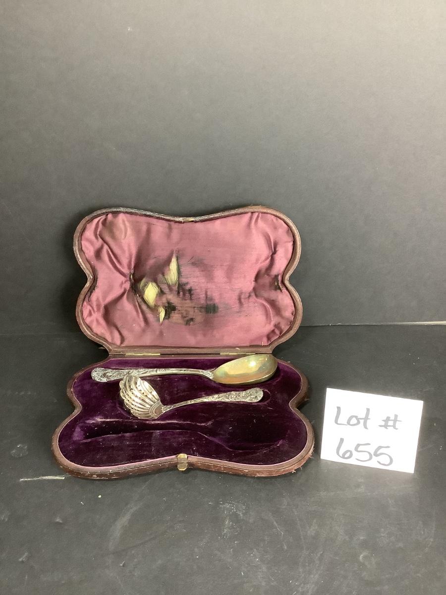 Very Rare Cast Bacchanalian Pattern Serving Spoons by Henry John Lias & Henry John Liars Jr. made in London in 1875 . Original Case included (missing one spoon)