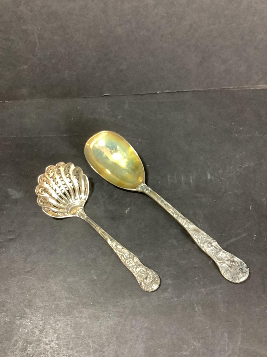 B - 655  Very Rare Cast Bacchanalian Pattern Serving Spoons by Henry John Lias & Henry John Liars Jr.