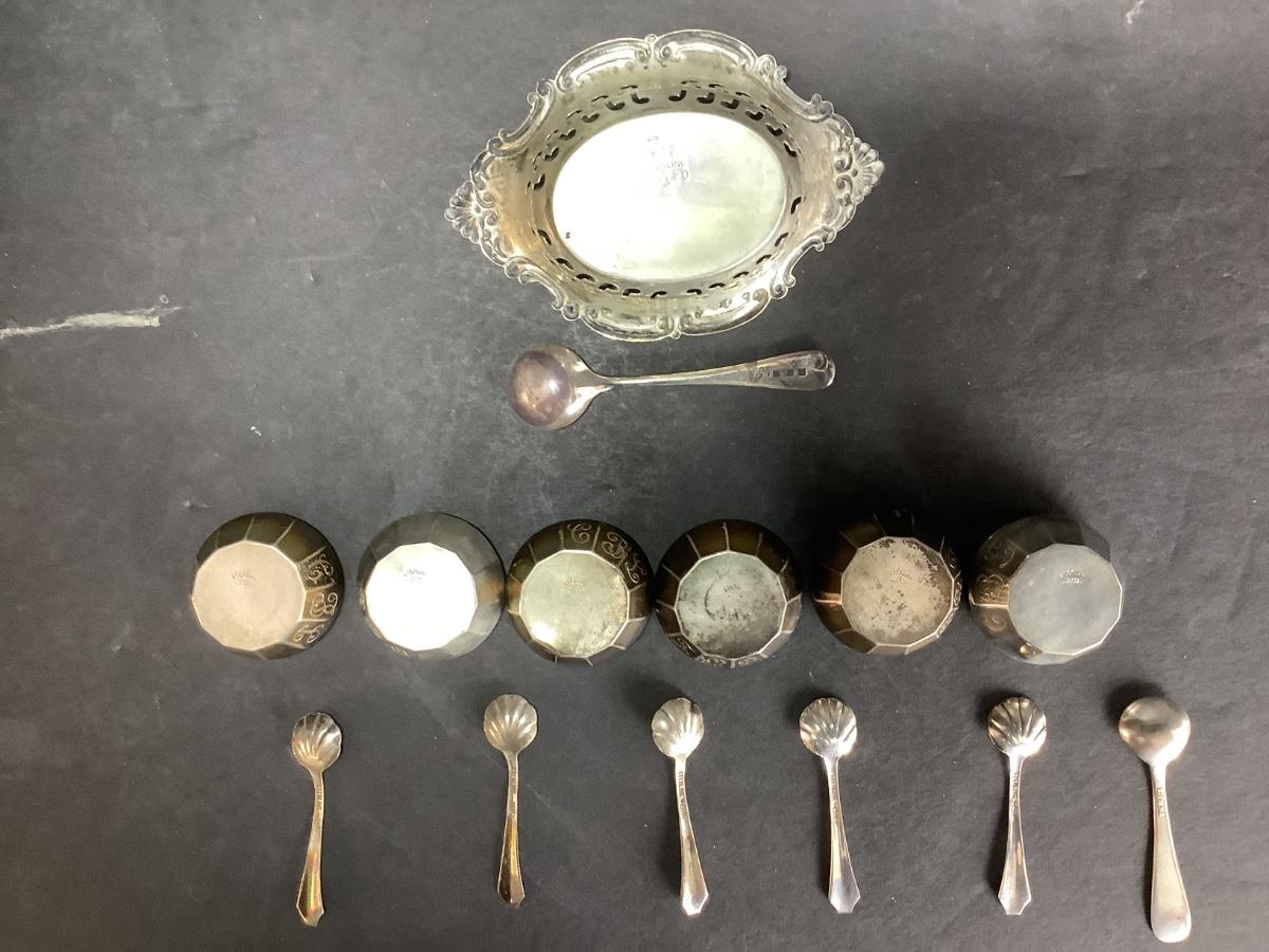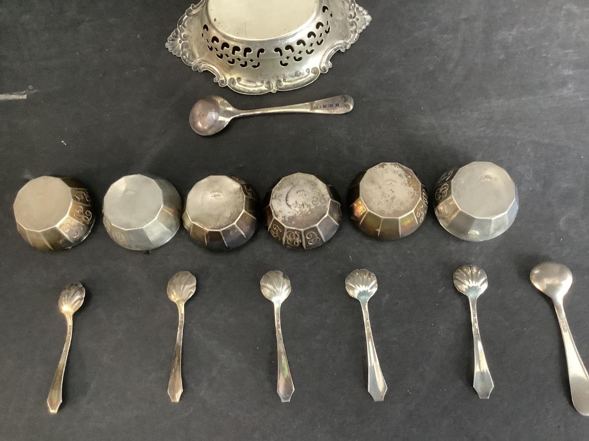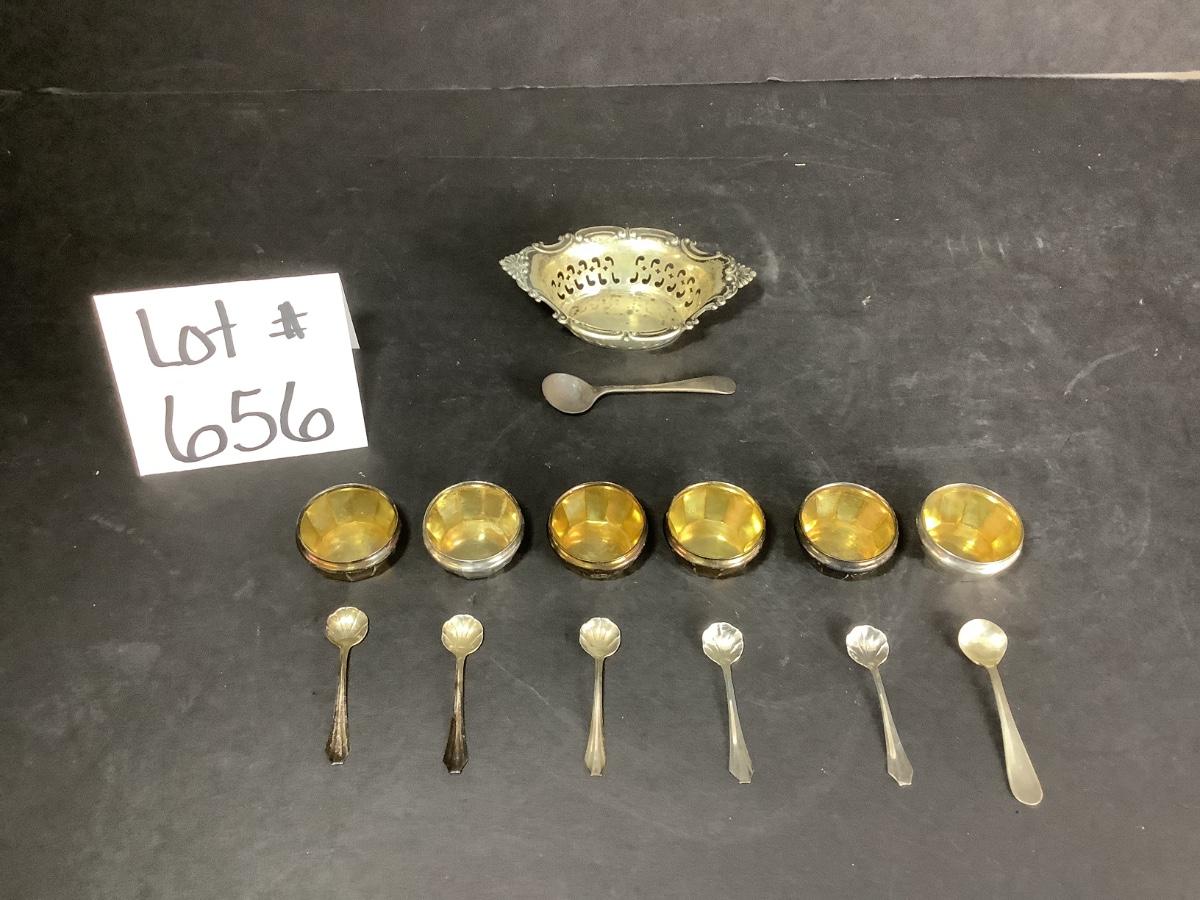 B - 656 Lot of Sterling Silver Salt Bowls & Spoons / Nut Bowl