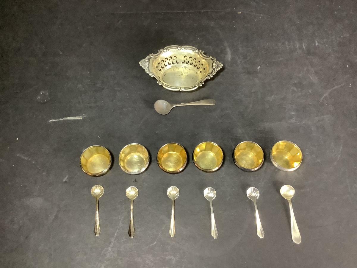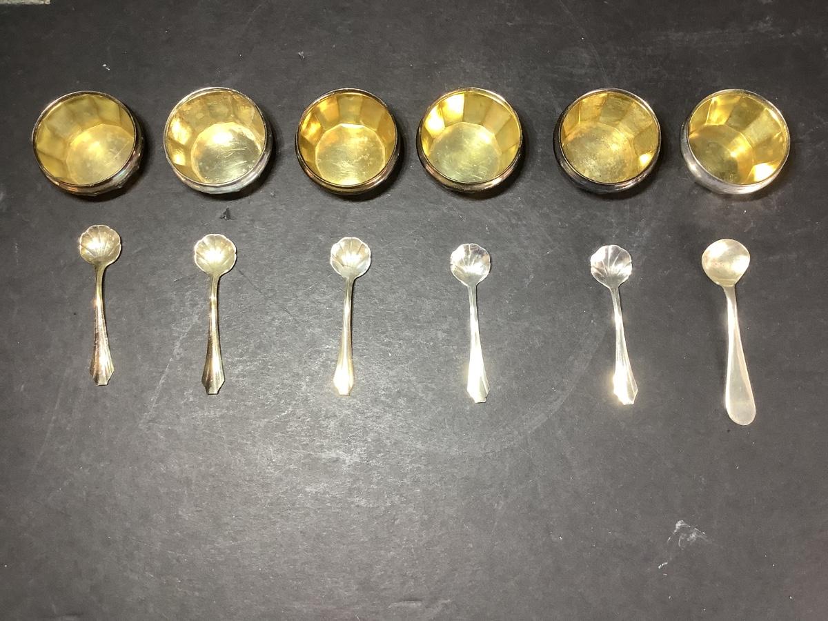 6 - Sterling Silver Salt Bowls & 6 - Spoons