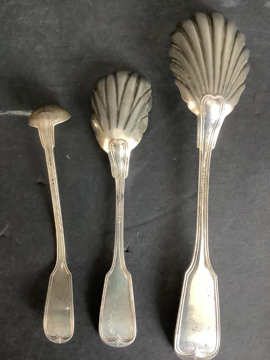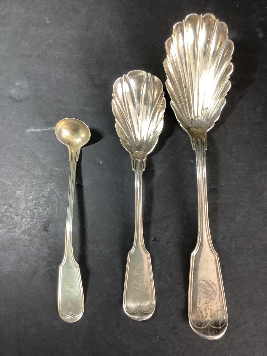 There are two sterling shell style spoons with small ladle and they have initial B engraved.