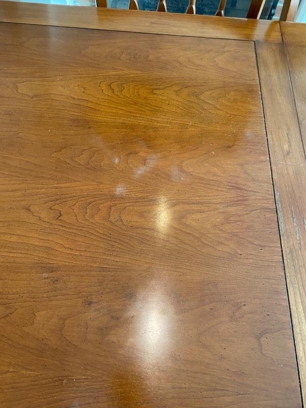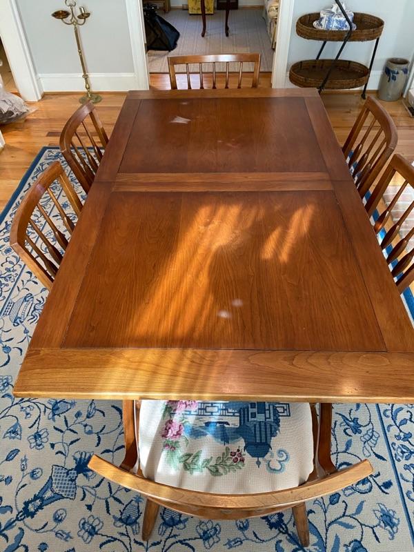 Cherry Trestle Base Table with 6 matching Chairs and Leaf