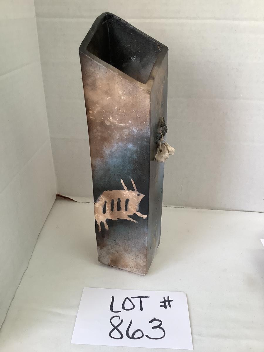 B - 863 Artisan Signed Unique Raku Pottery Vase