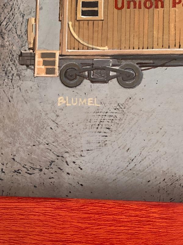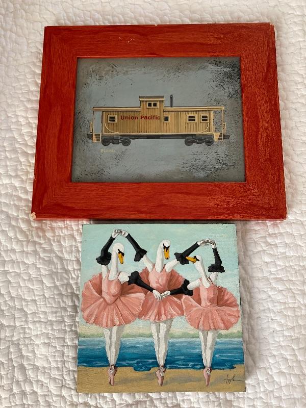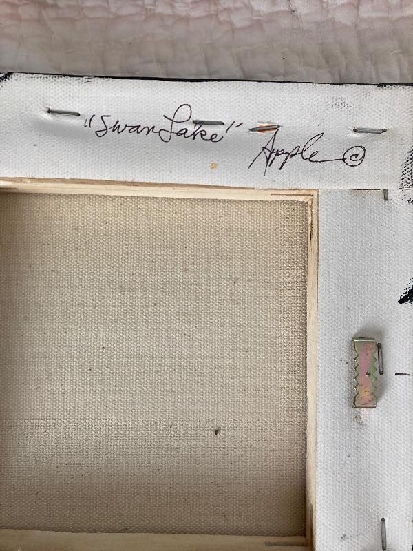 Swan Lake painting signed “Apple“ measures Union Pacific Art signed “Blumel” measures 13-1/2”x 11-1/2”