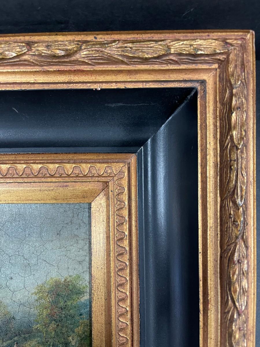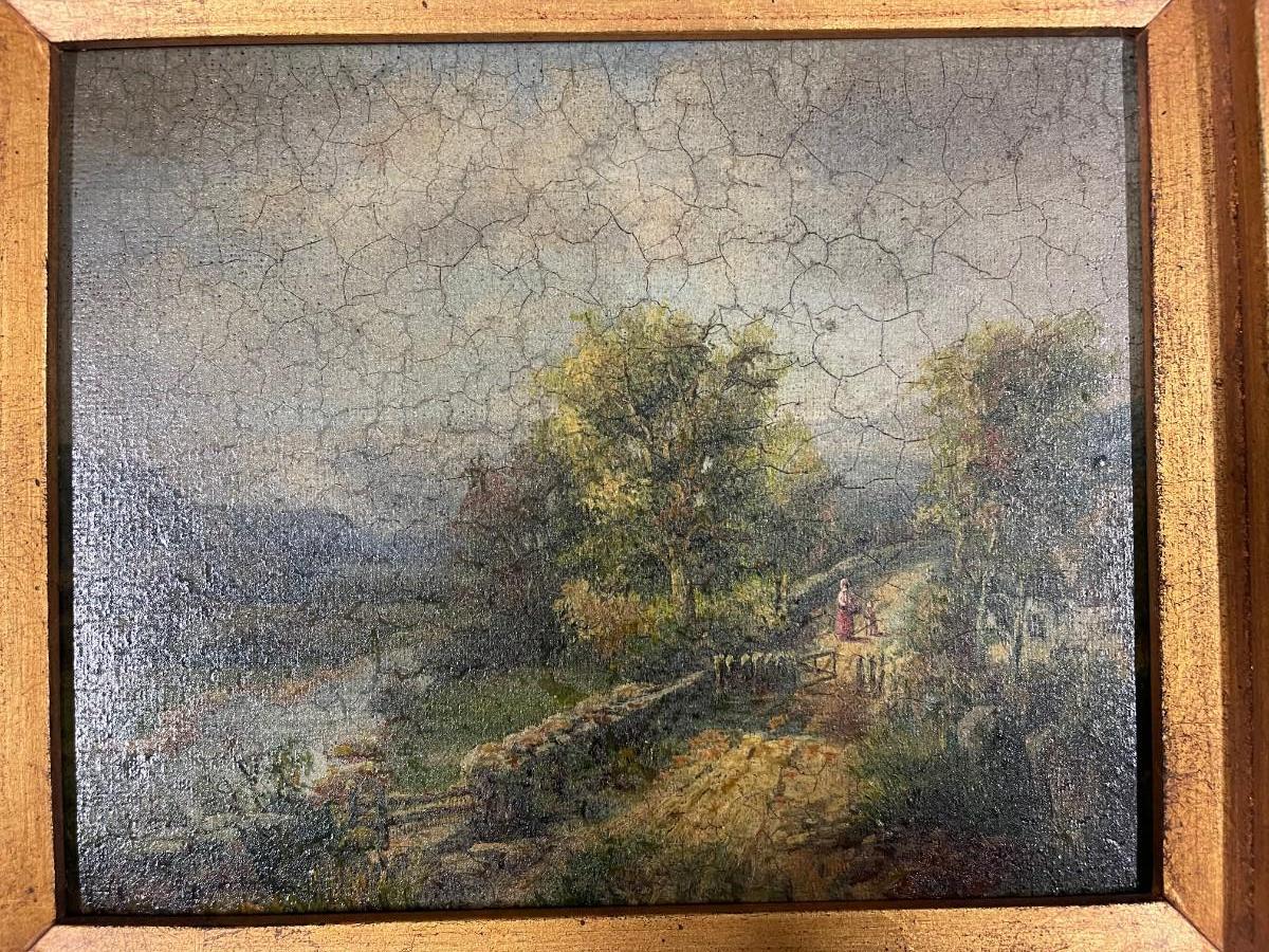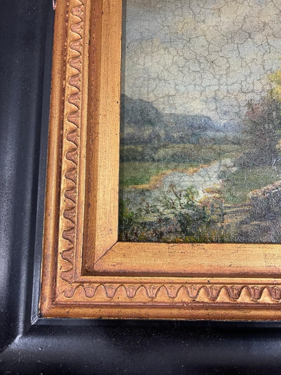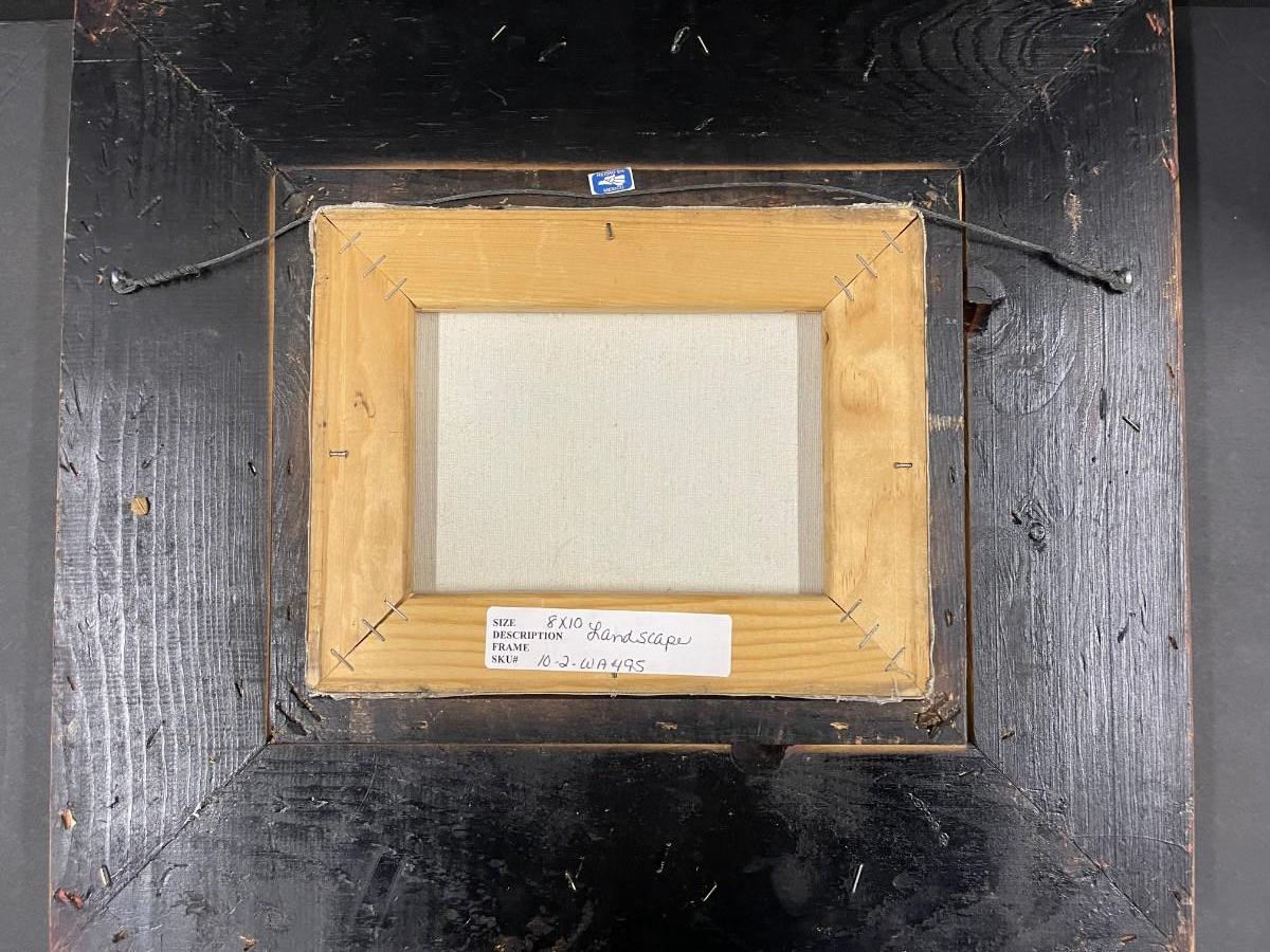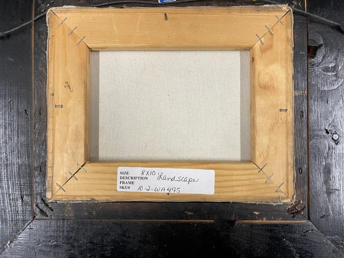 Custom framed landscape art on canvas by B Dalton. Framed 18 1/2" x 16 1/2"; Canvas: 8" x 10"