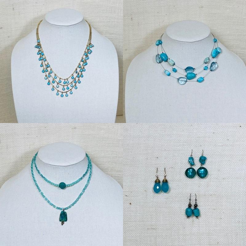 All 3 Necklaces have an extension to adjust length. Earrings are all Shepherd Hooks