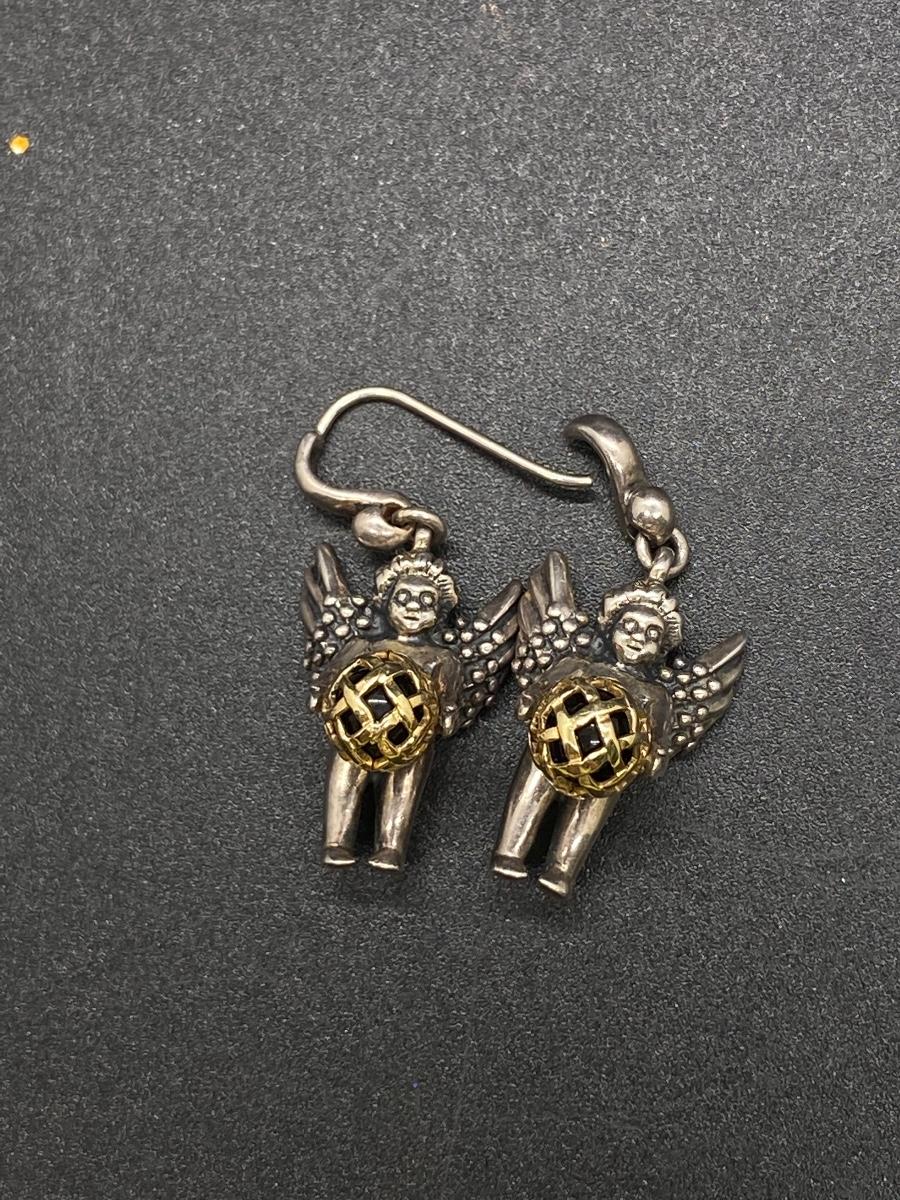 B. Kieselstein Cord Sterling Silver 925 14k Gold Angel Earrings *BROKEN*