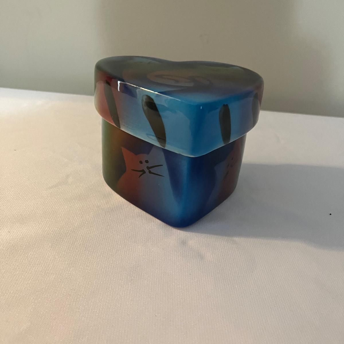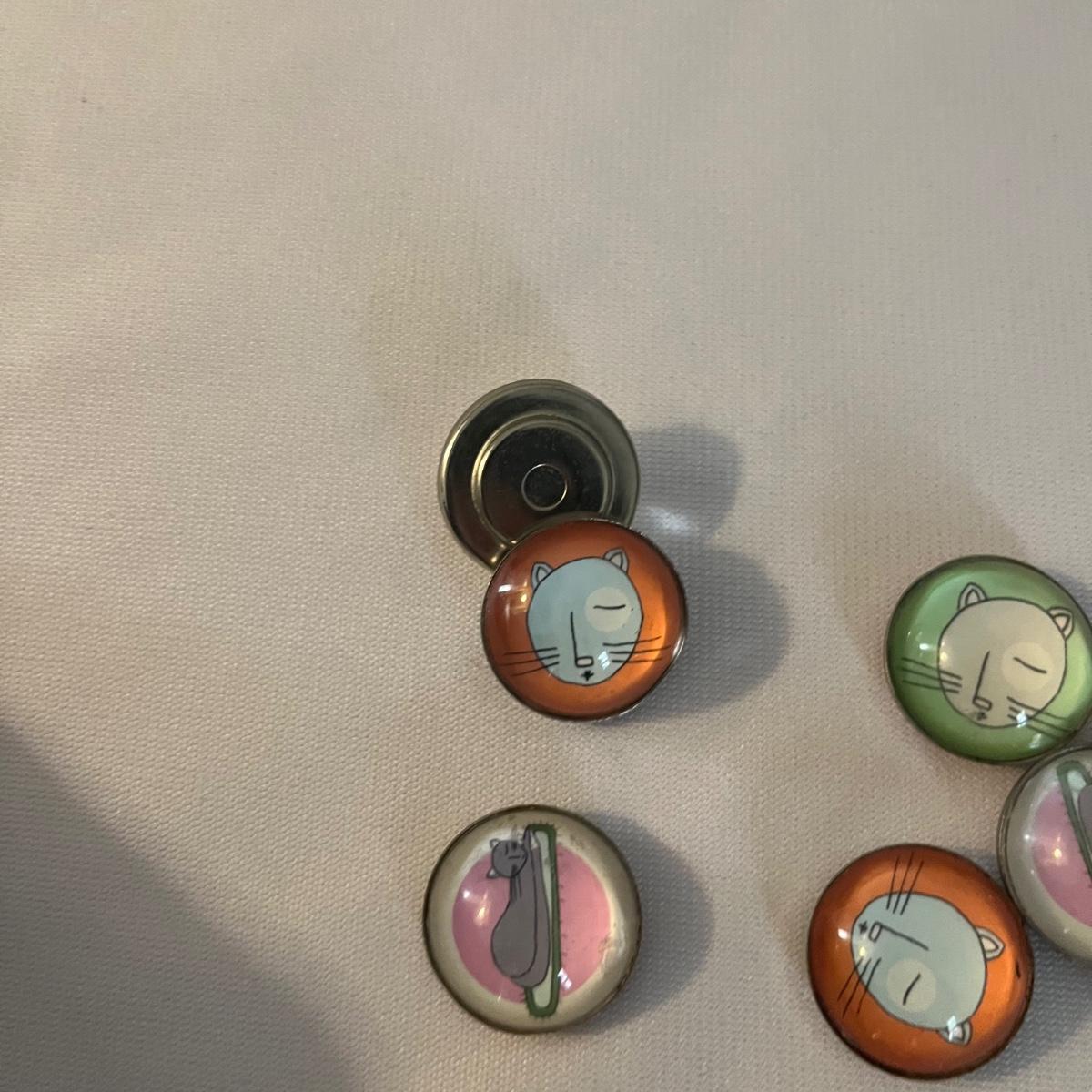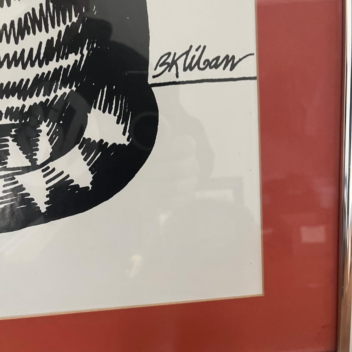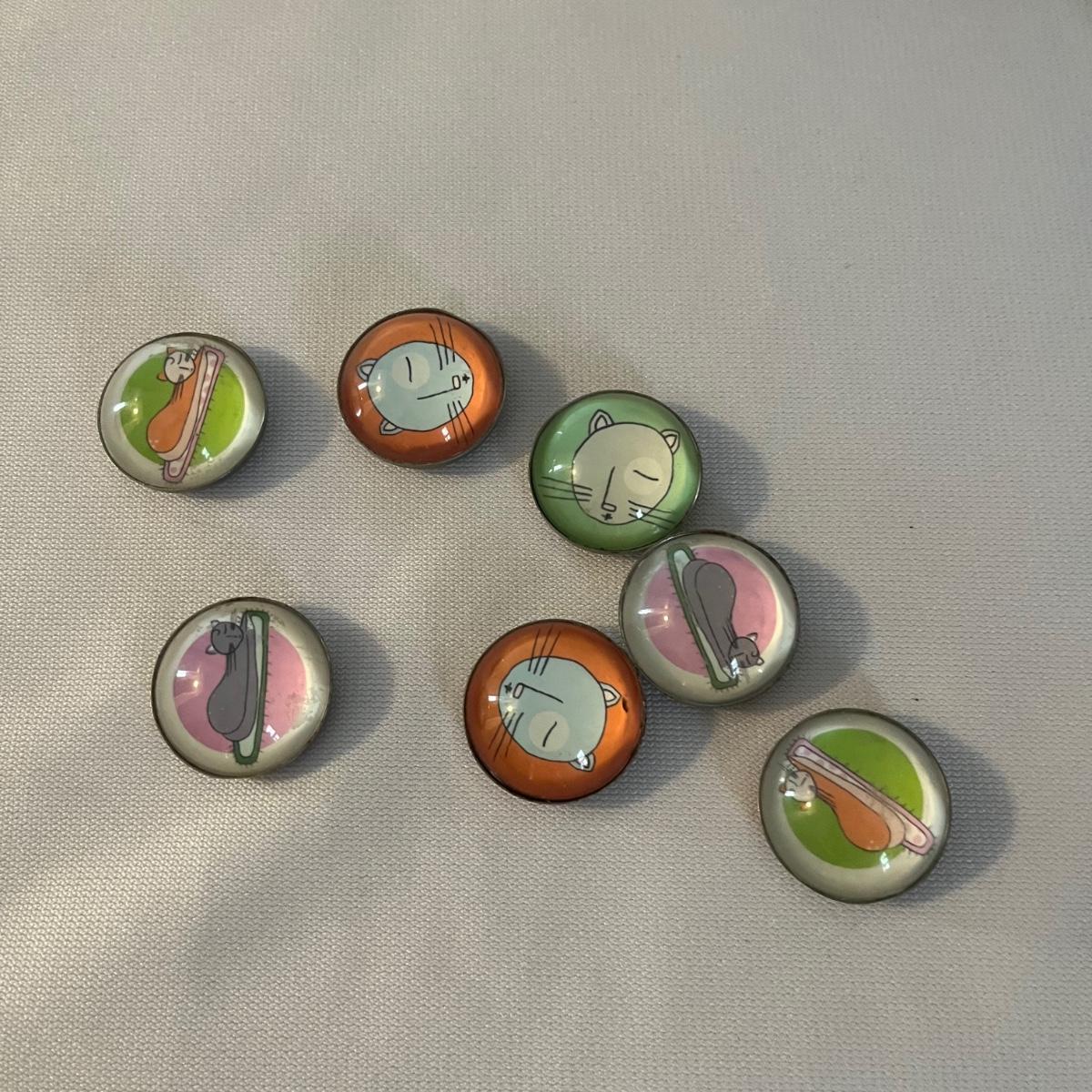 Lot includes a framed and matted Love a Cat artwork by B. Kilban that measures 22.5” x 28.5”. Also includes ceramic signed box by Judith Stiles, two framed cat prints and seven small cat magnets.