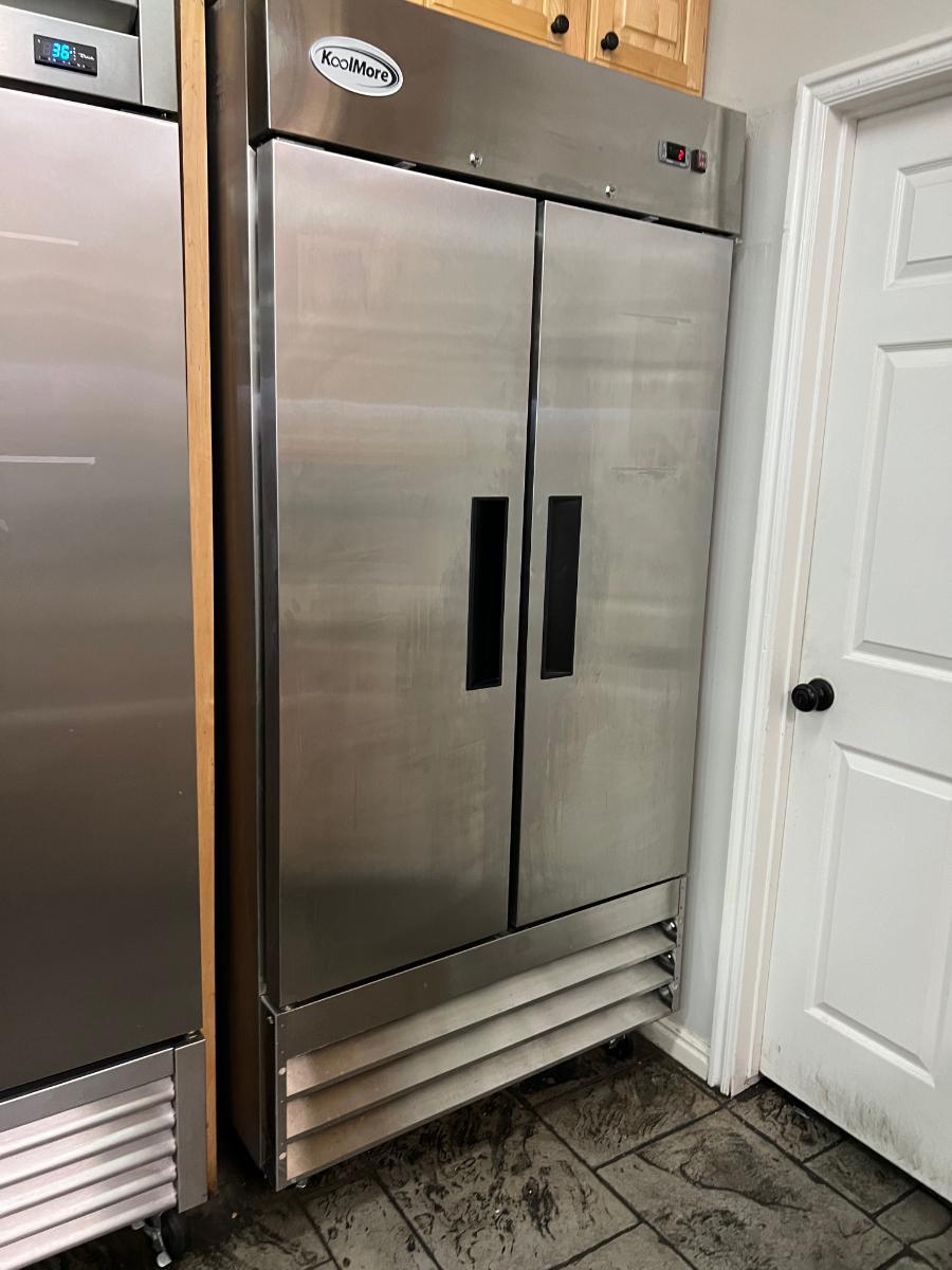 B  KOOLMORE Double Door Commercial Freezer, On Casters