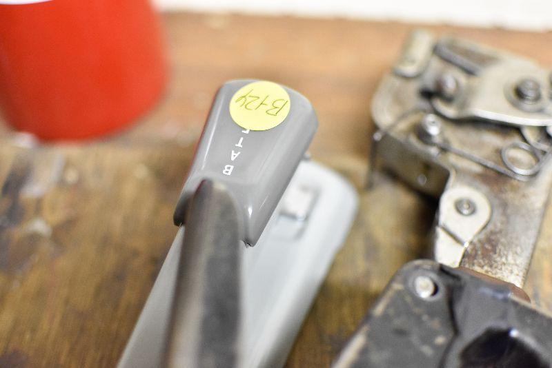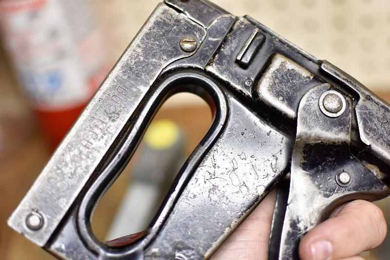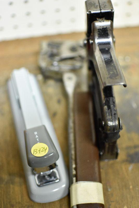 Bates desk model, Dou-Fast hammer, stapler, tacker, and a Bostitch heavy duty tacker, stapler gun. Untested.