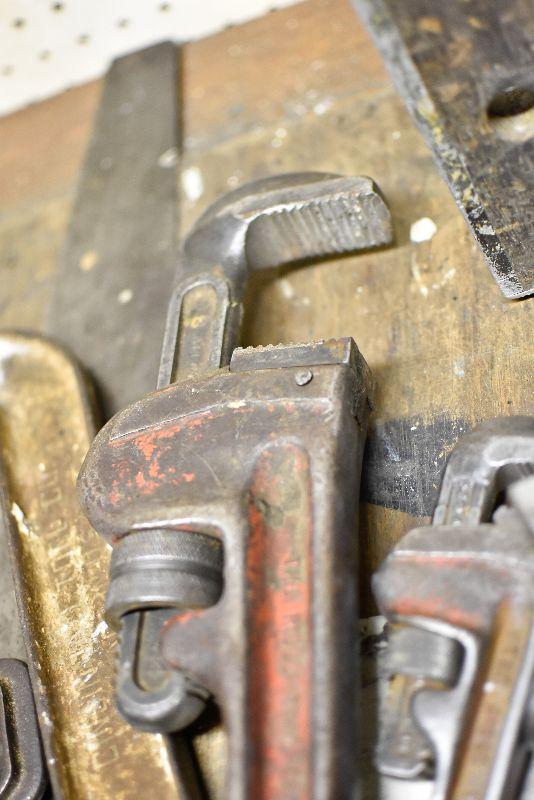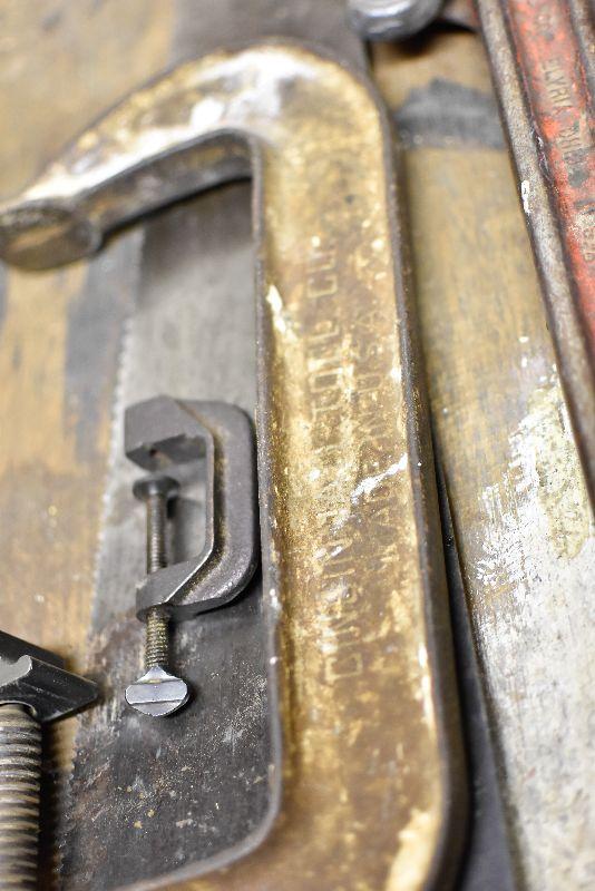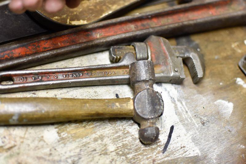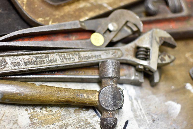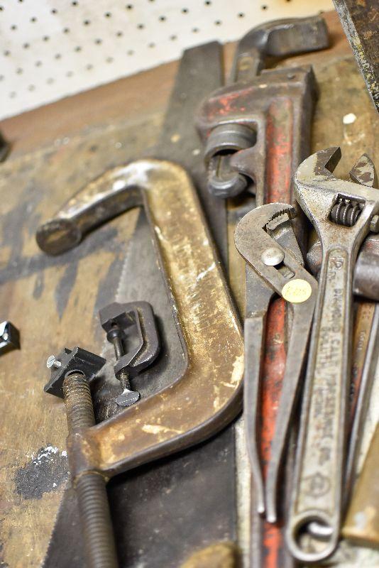 Clamps, wrenches, hammers, saw, and more. Bring box for moving.