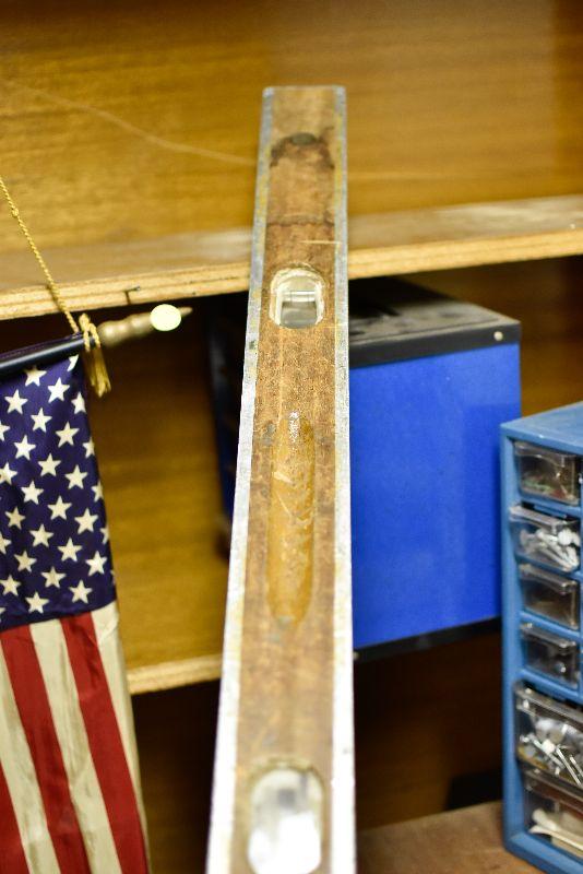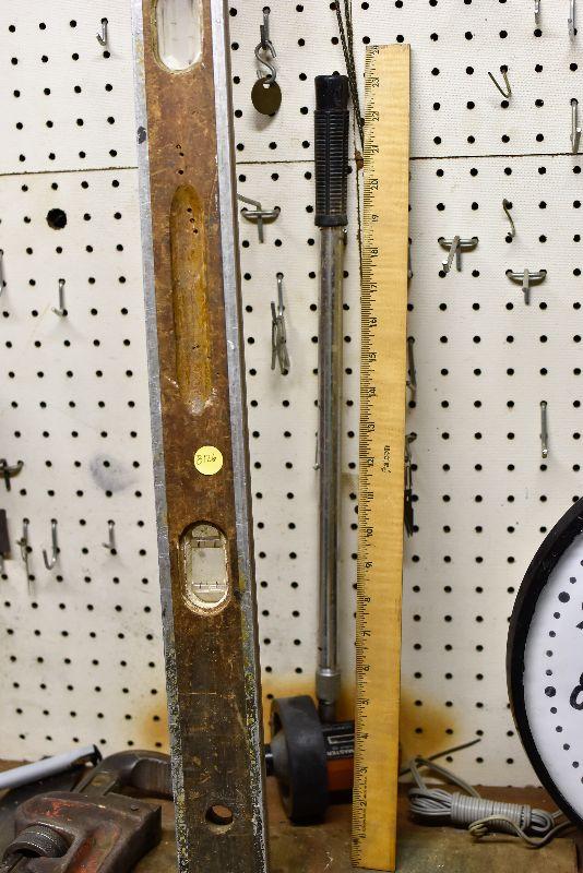 Vintage wood level, yardstick and a Measure=Master, untested.