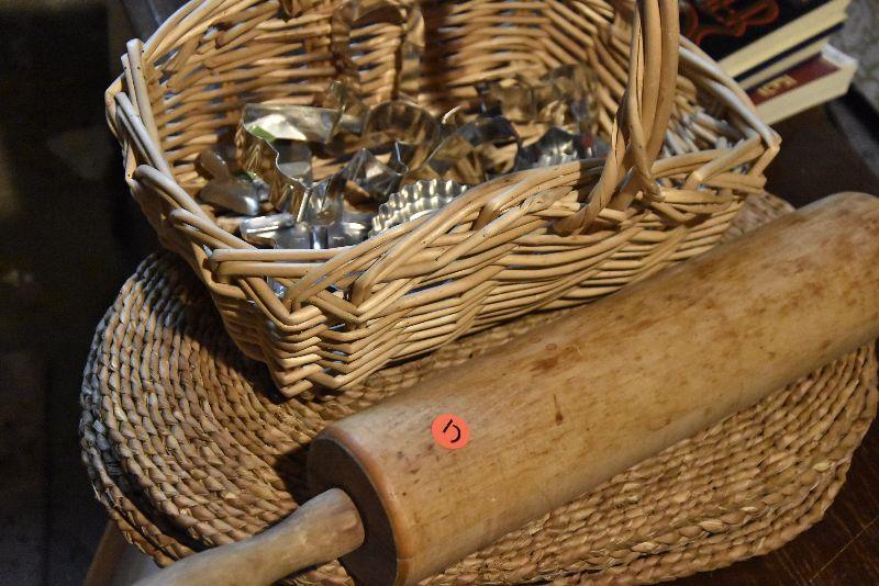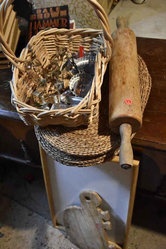 B Lot 17: Vintage Cookie Cutters & Large Wood Rolling Pin