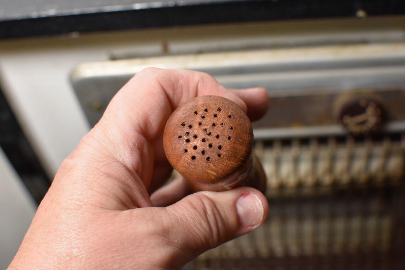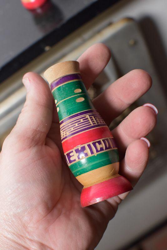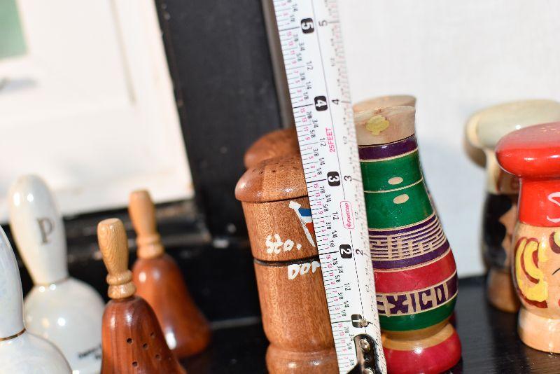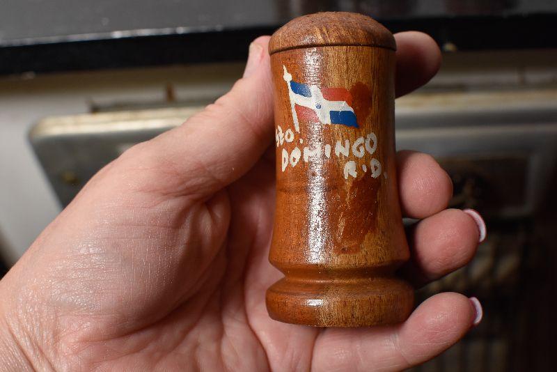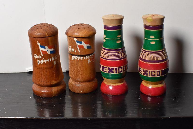 Wooden salt and pepper shakers from Mexico and Domingo.