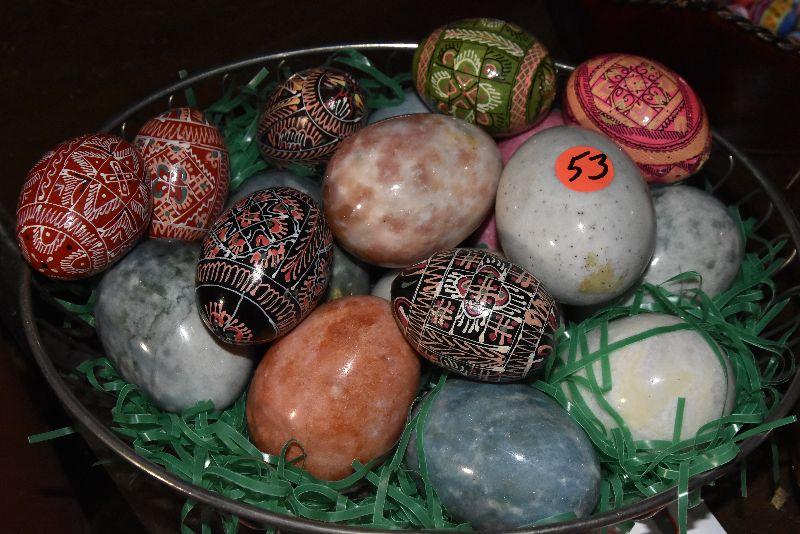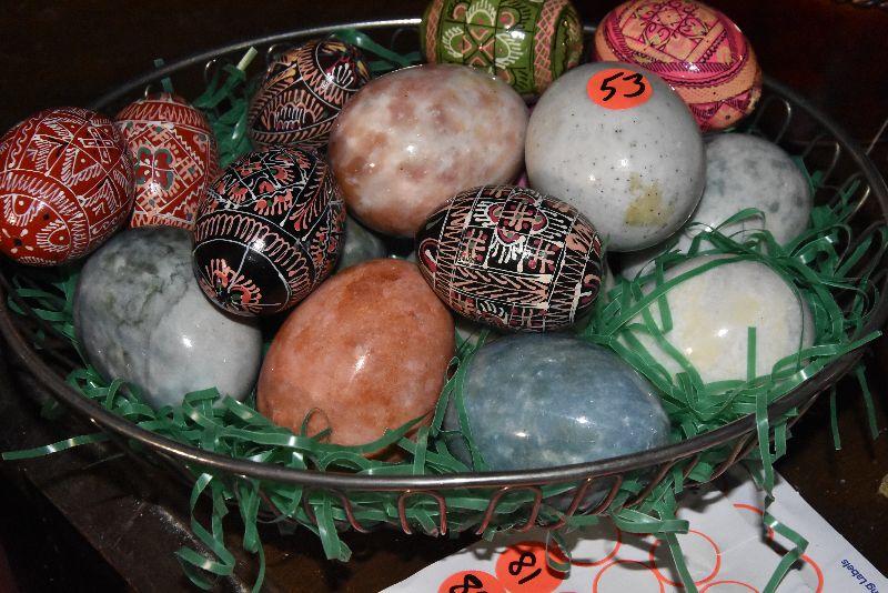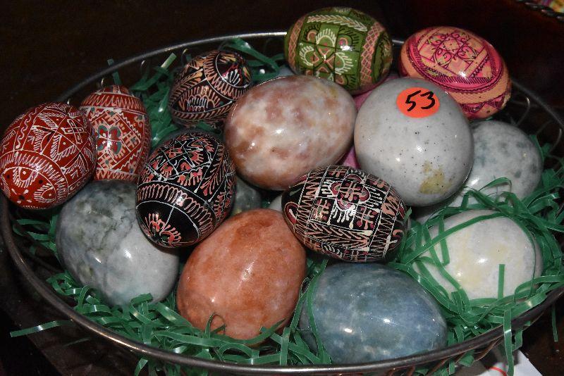 B Lot 53: Basket of Handpainted and Marble Eggs