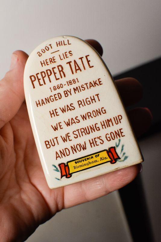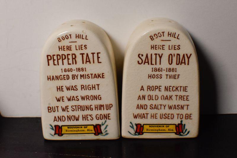 Tombstone shaped salt and pepper shakers from Boot Hill, Alabama.