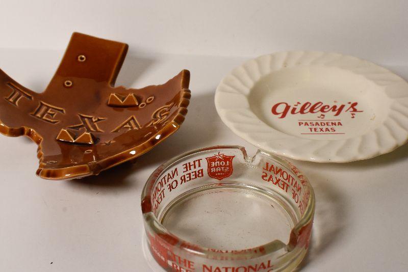 Famous Gilley's of Pasadena, Lone Star Beer, and the great state of Texas ashtrays.