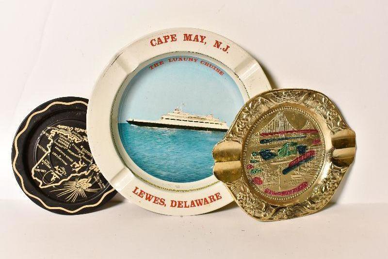 Maine, and Cape May Ferry NJ to Golden Gate Bridge vintage ashtrays.