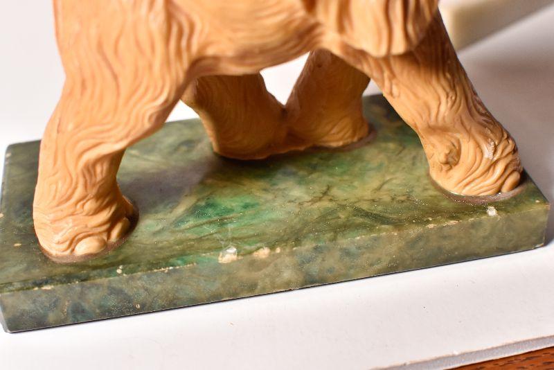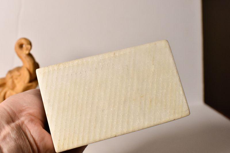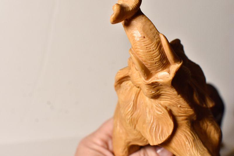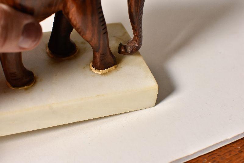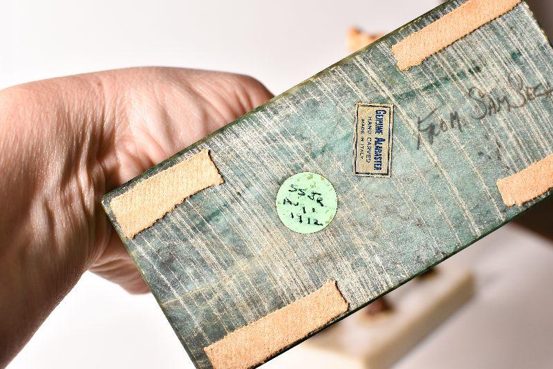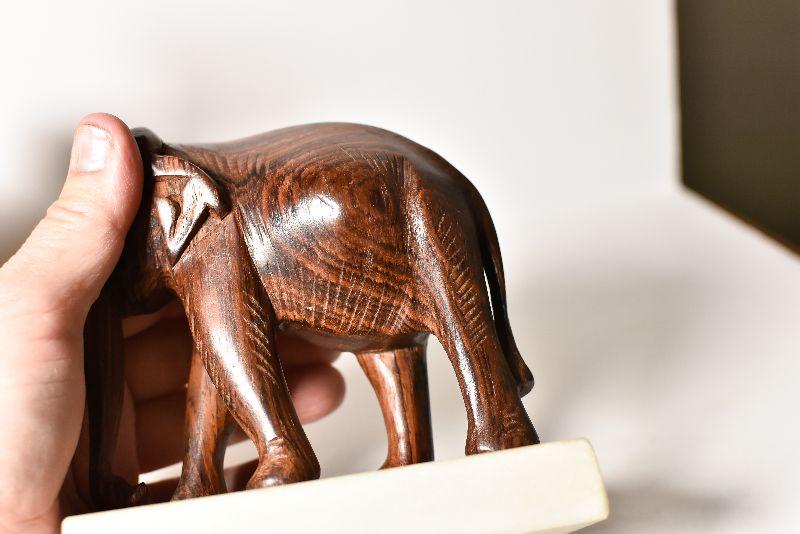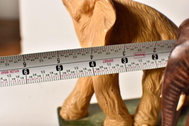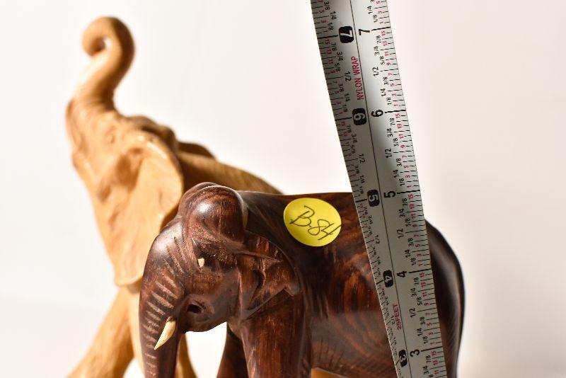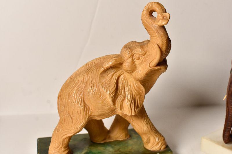 Hand carved, alibaster stone elephant made in Italy, base has chips, and a wooden elephant on stone base.