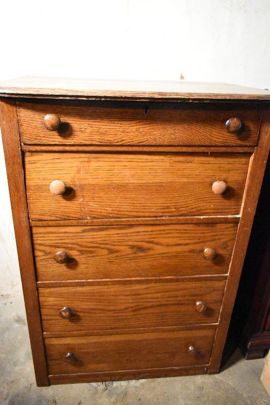 Vintage, wooden bureau. Top needs refinishing. 28x19x38 Bring help to move from basement.