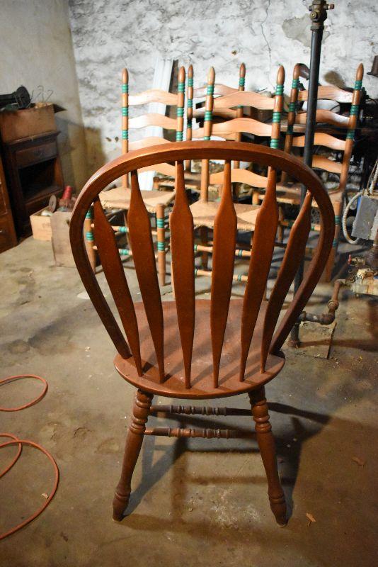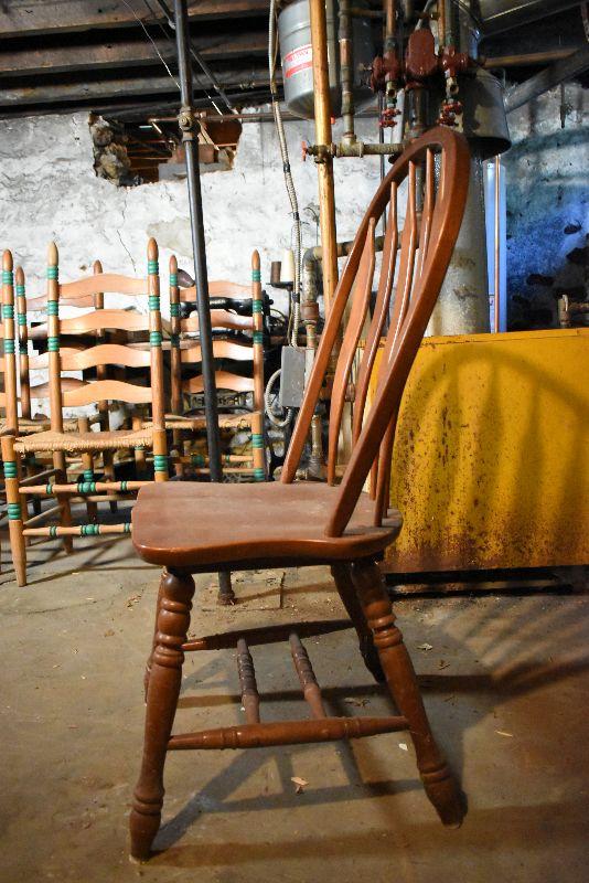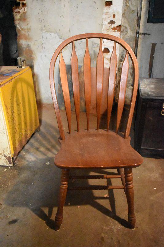 Wooden chair with high back.