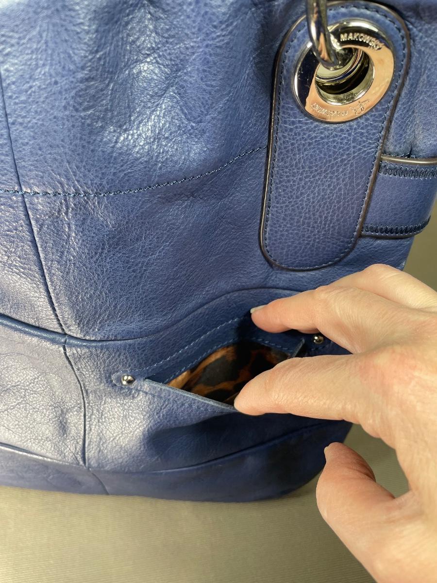 NWOT Beautiful, quality leather with silver hardware. Includes dust cover. Excellent new condition!