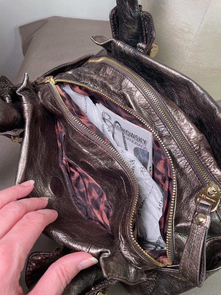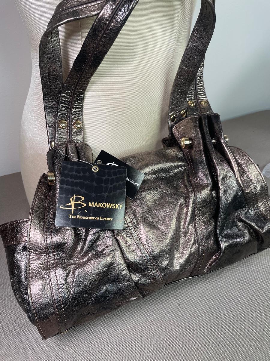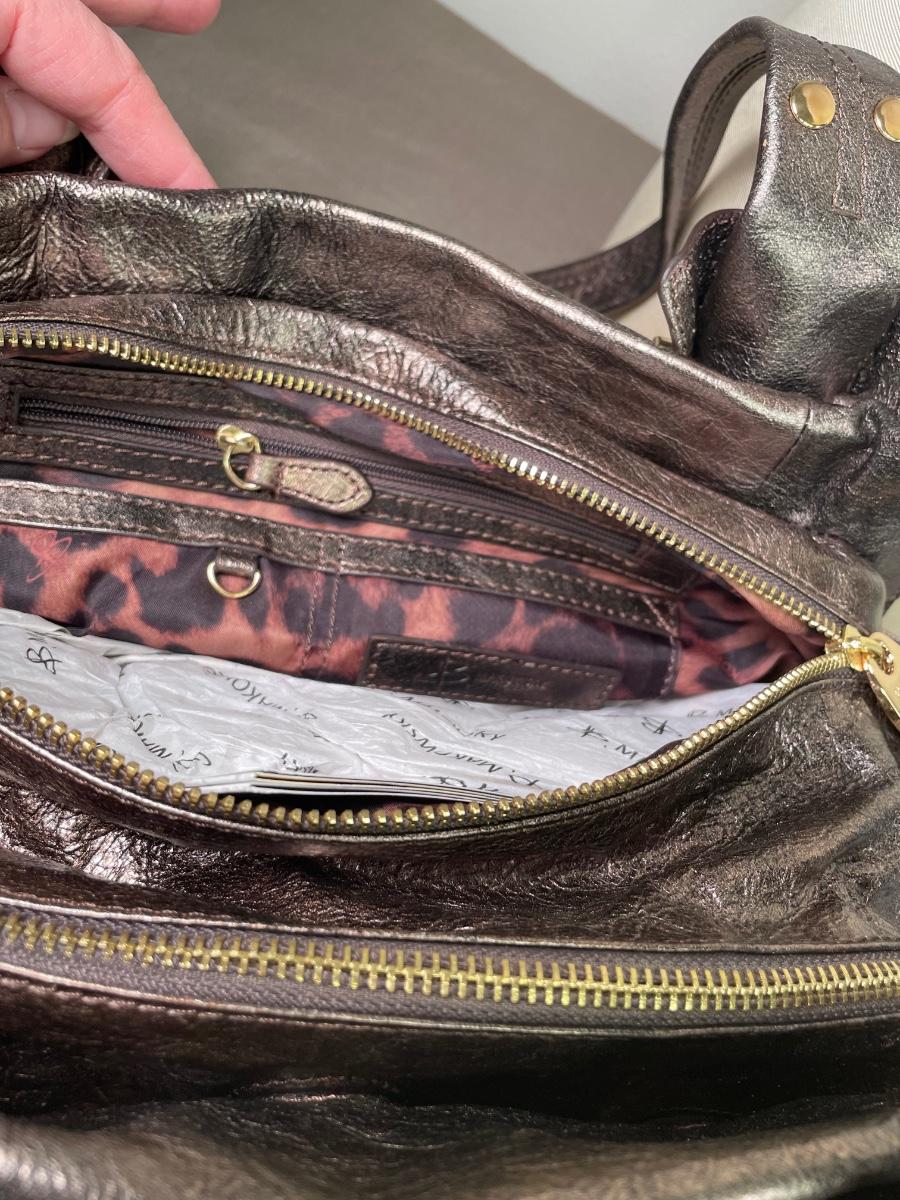 NWT! Great color in bronze leather. Lots of separate sections with zippers.