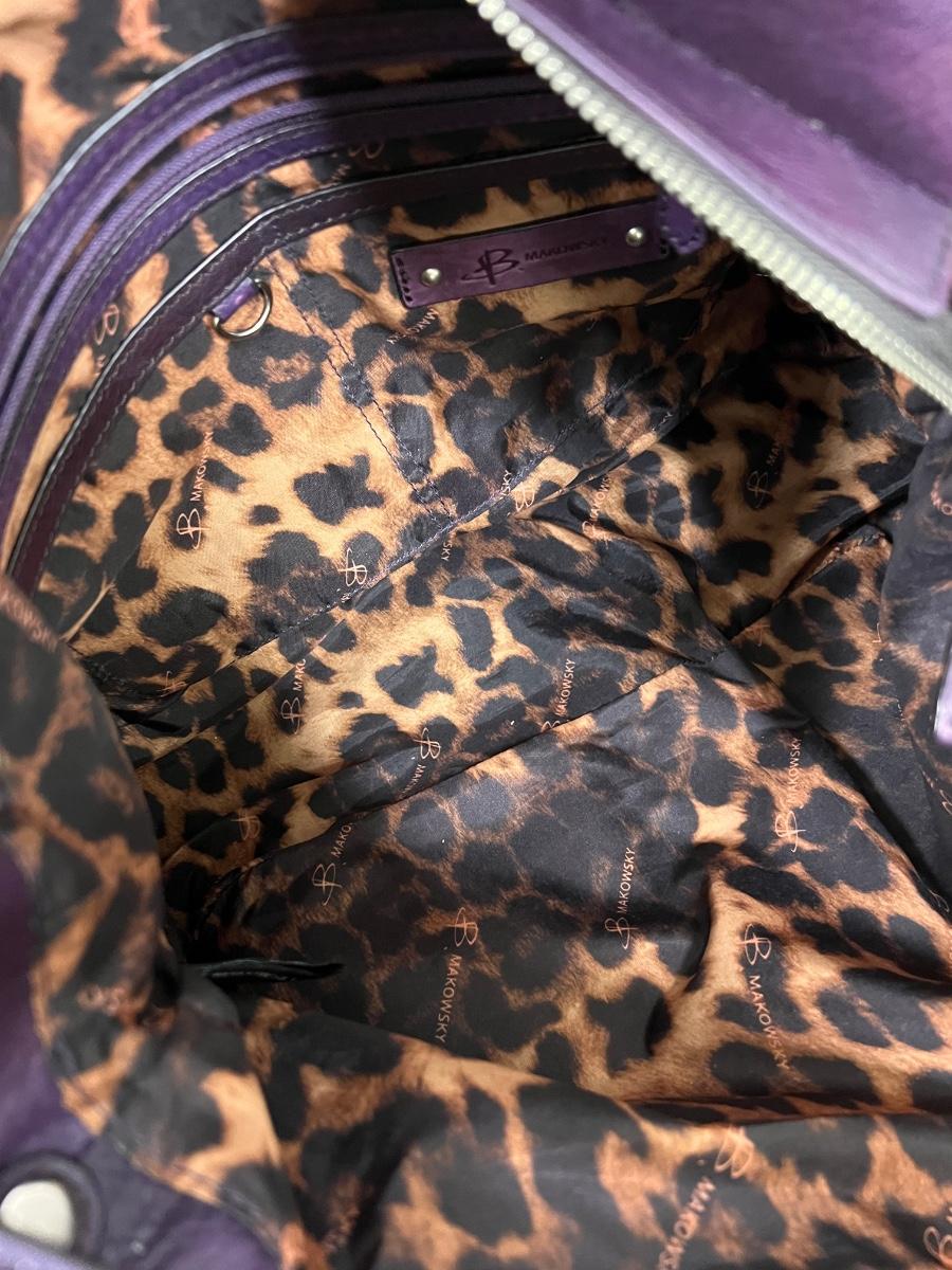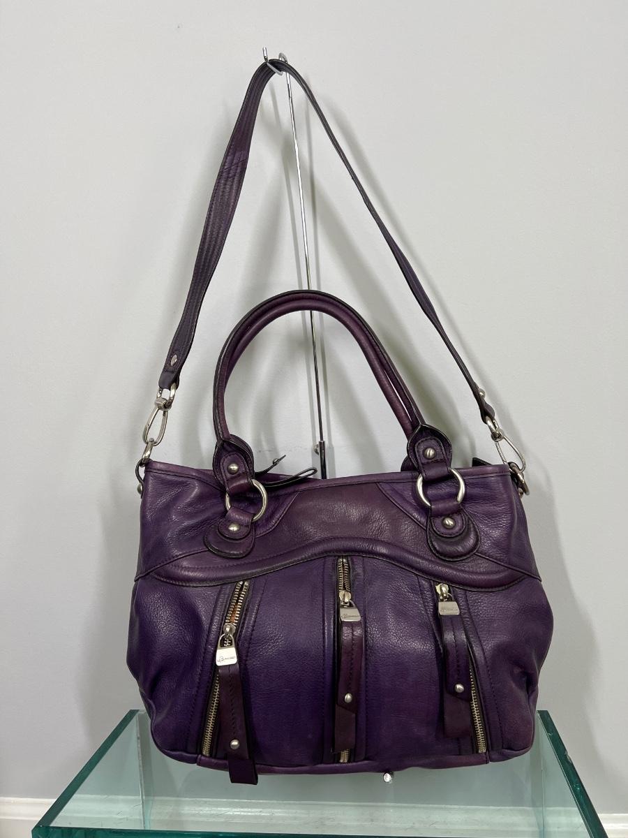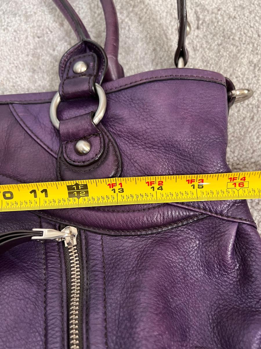 B. Makowsky Hobo Bag Purse Leather Double Straps Zippers Pockets Eggplant Purple
