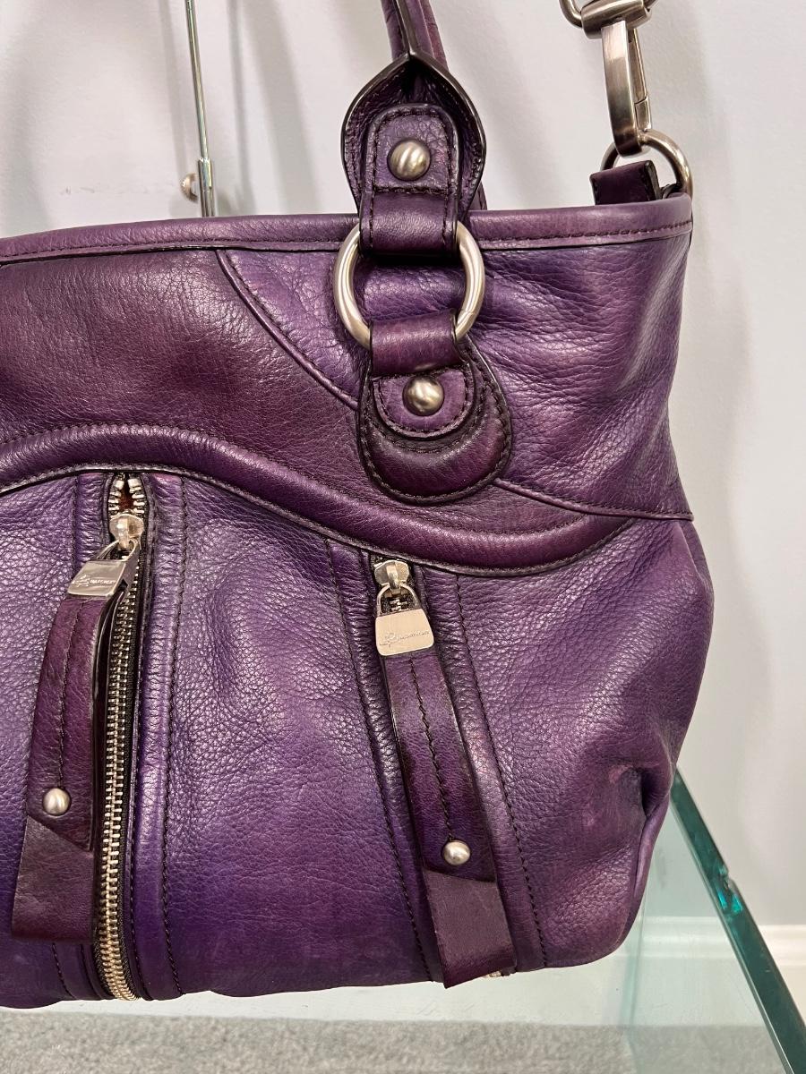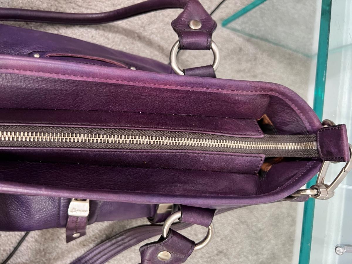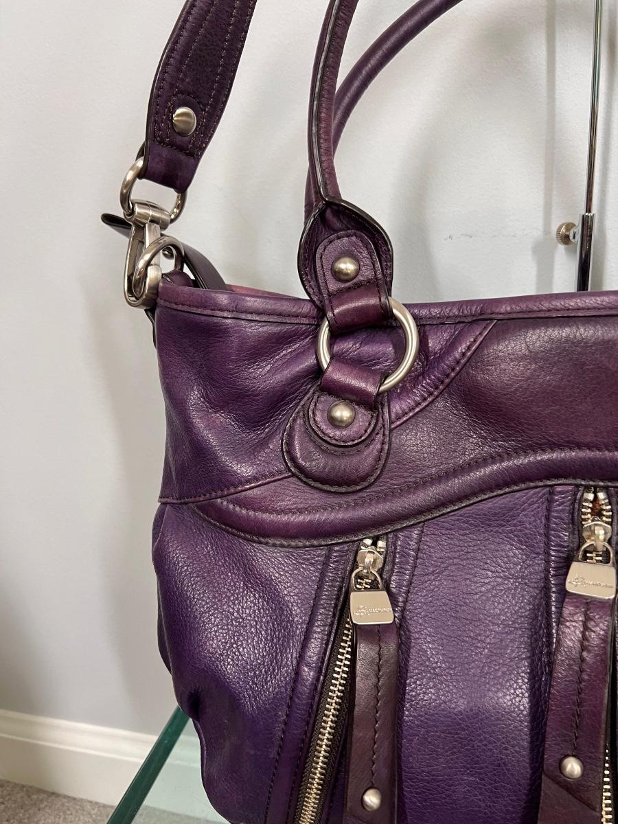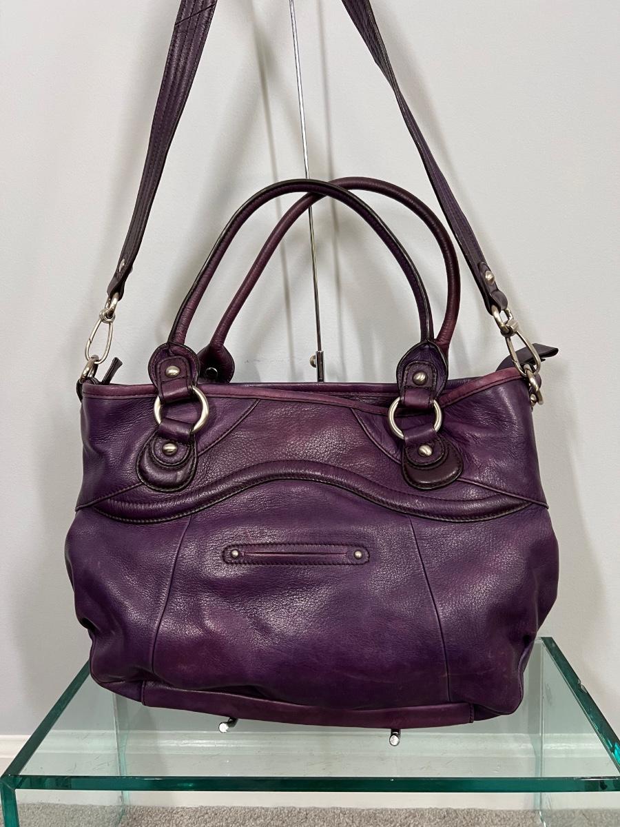 B. Makowsky Hobo Bag Purse Leather Double Straps Zippers Pockets Eggplant Purple