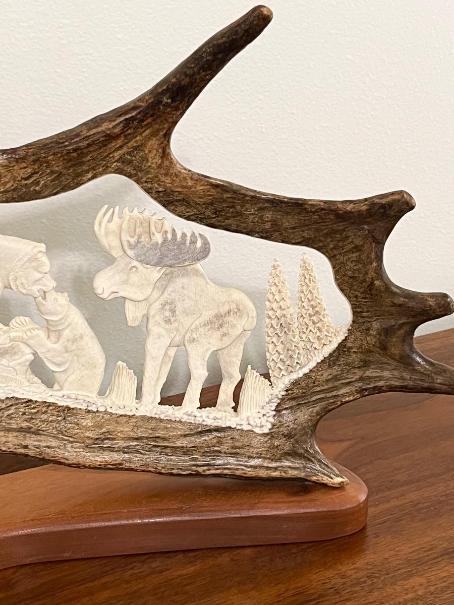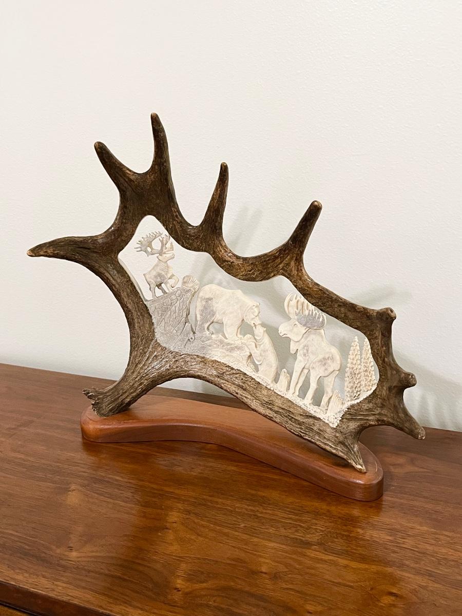 B. MERRY STUDIOS ~ Hand Carved & Polished Moose Antler ~ Bears, Moose & Elk