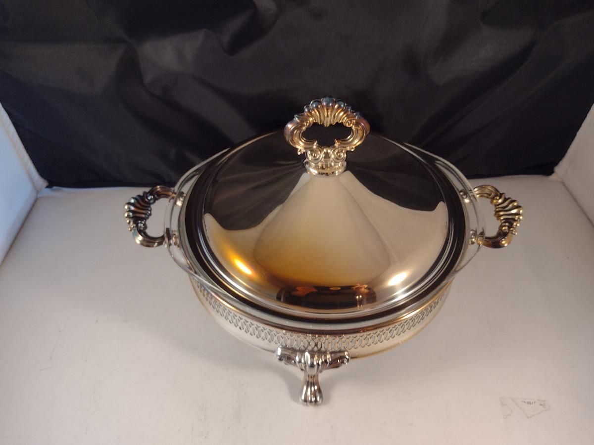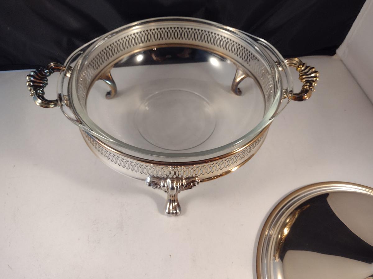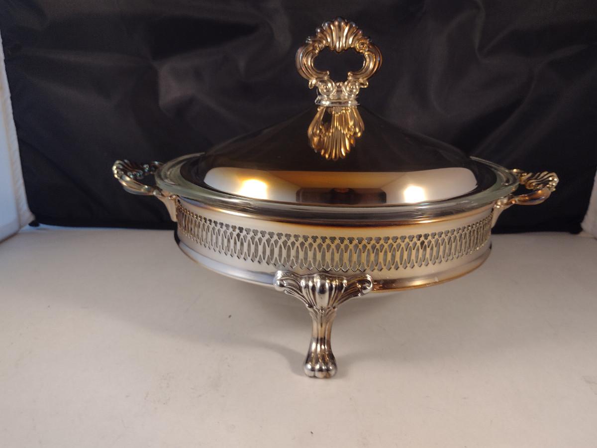 B. Rogers Metal Casserole Holder and Lid with Pyrex Insert- Two Quart Size