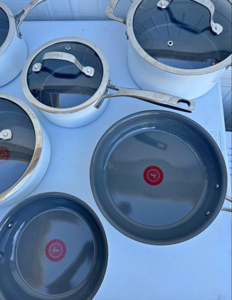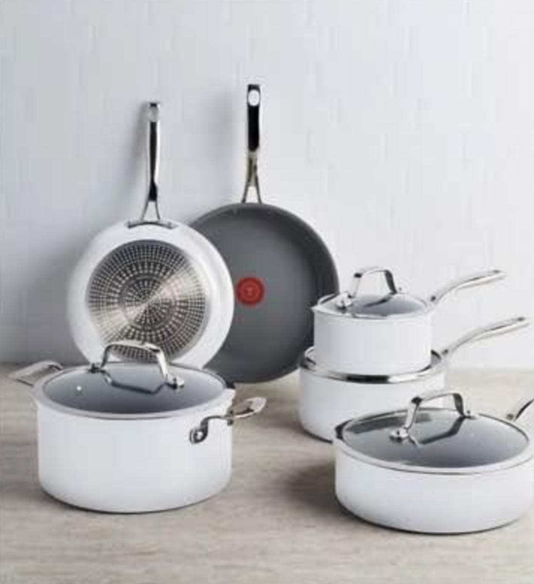 B - T-fal Excellence Ceramic Non-Stick Cookware Set, 10-Piece - White