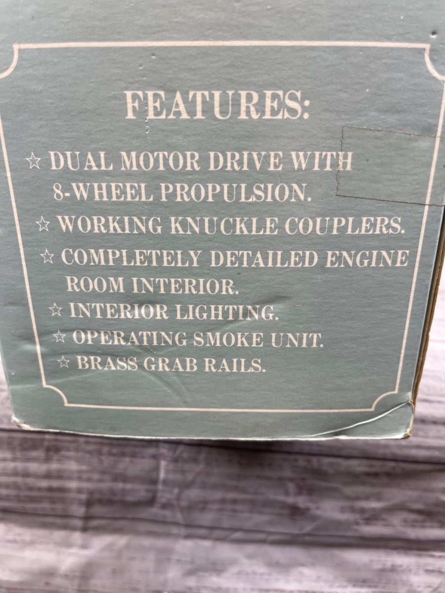 Great detail; lighted detailed engine room, smoke unit, brass grab rails and knuckle couplers.