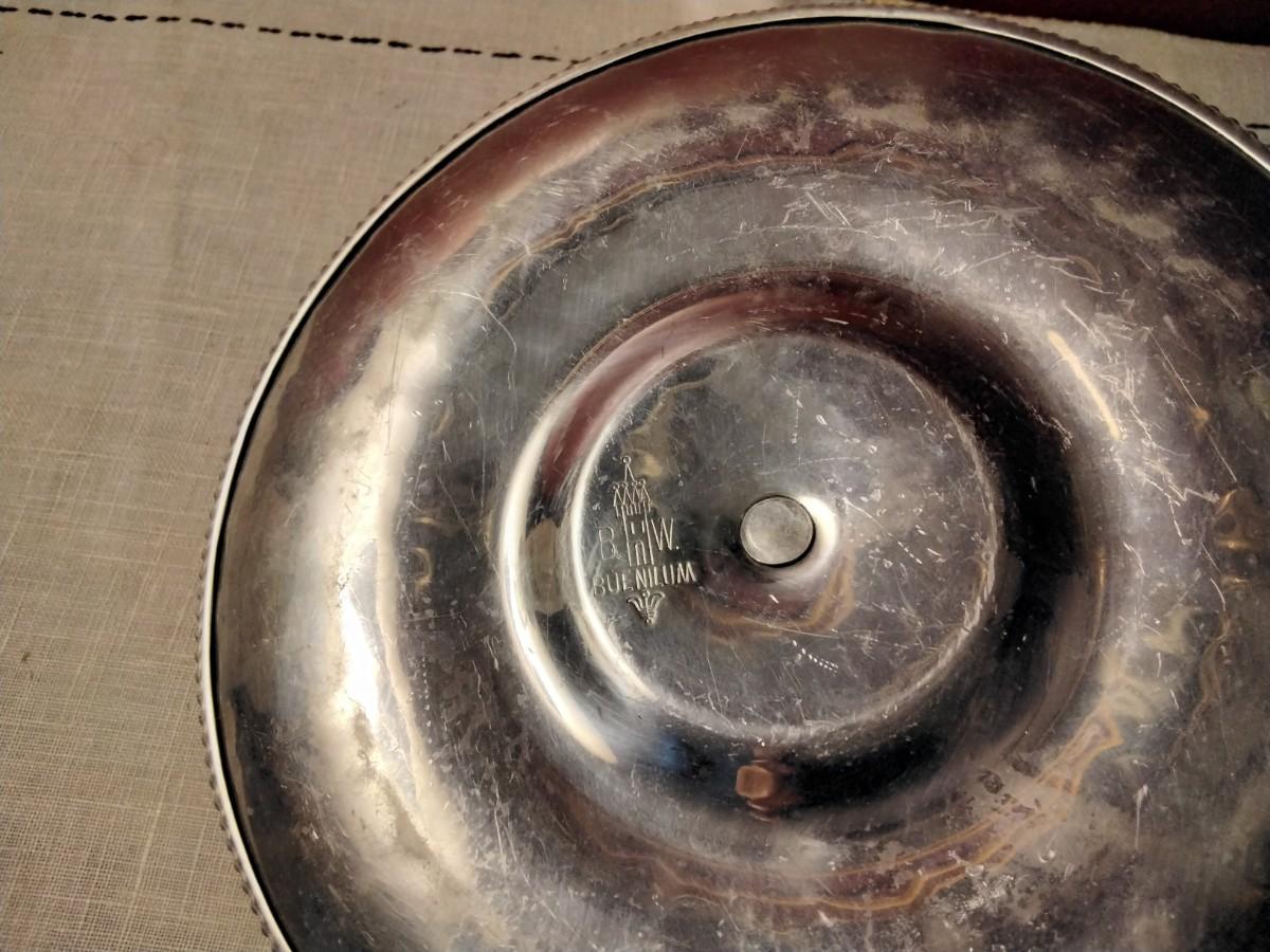Measures 6" Wideand 4 1/4" Tall to the handle. Marked B. W. Buenilum on the bottom. Item is in pristine condition.
