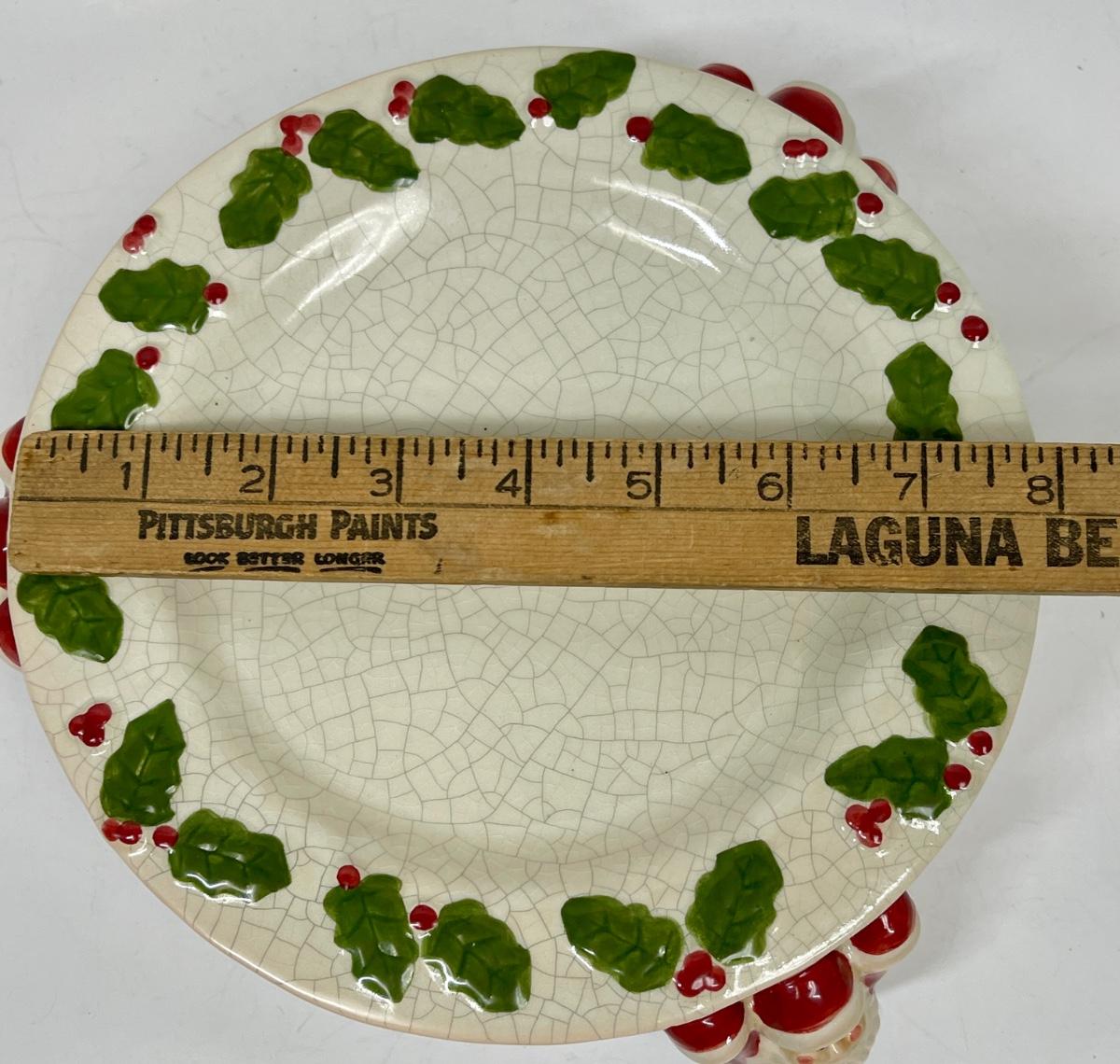 Approx. 8" across, lots of visible crazing on the plate surface. Good condition.