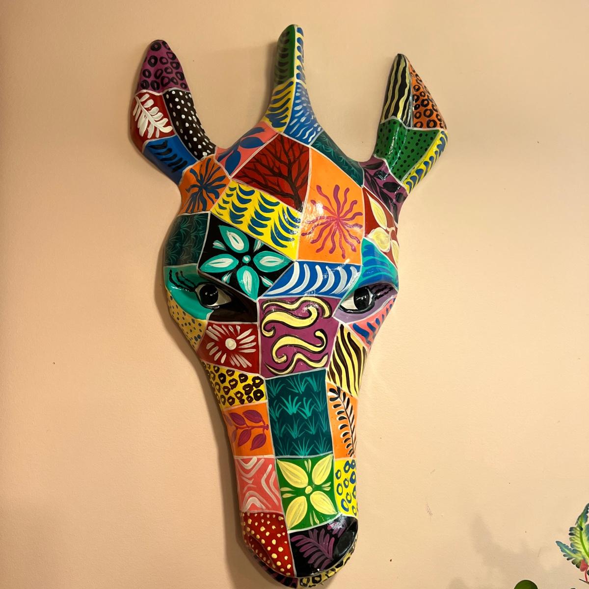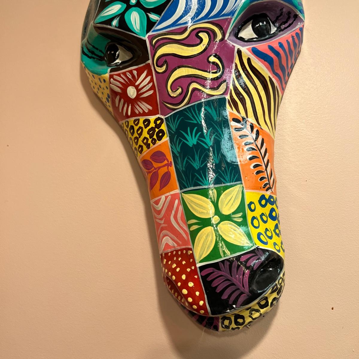 Large Paper Mache Hand Painted Giraffe Wall Art 15"x24"