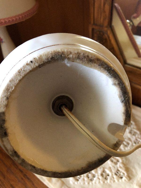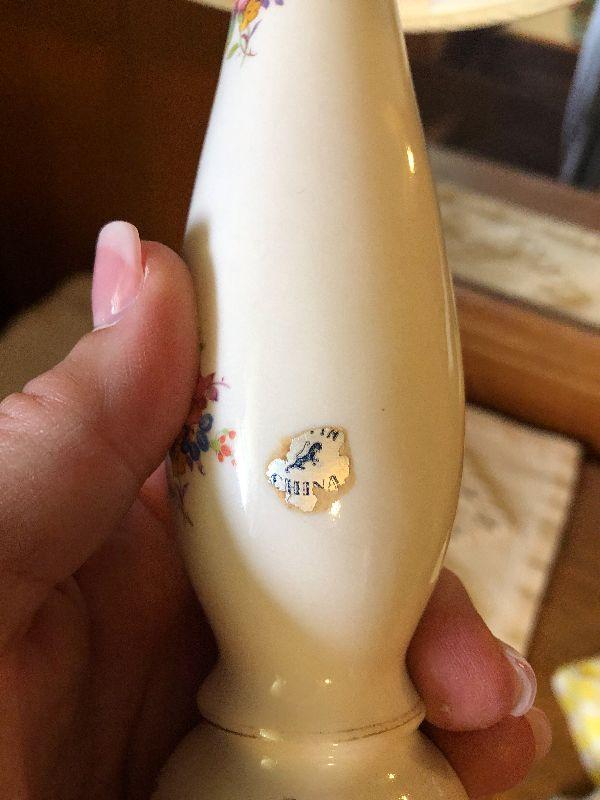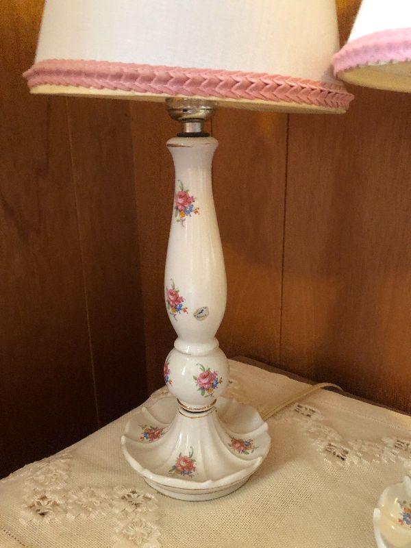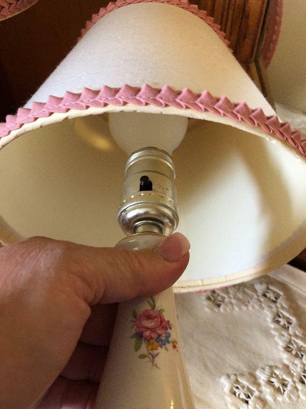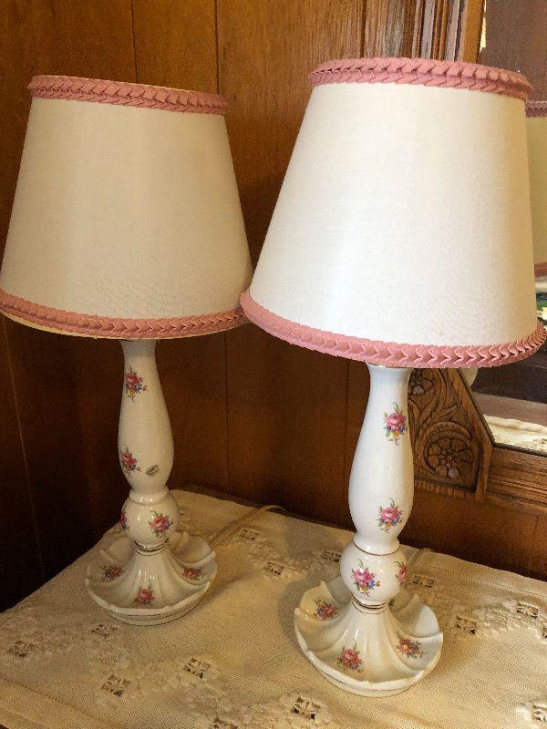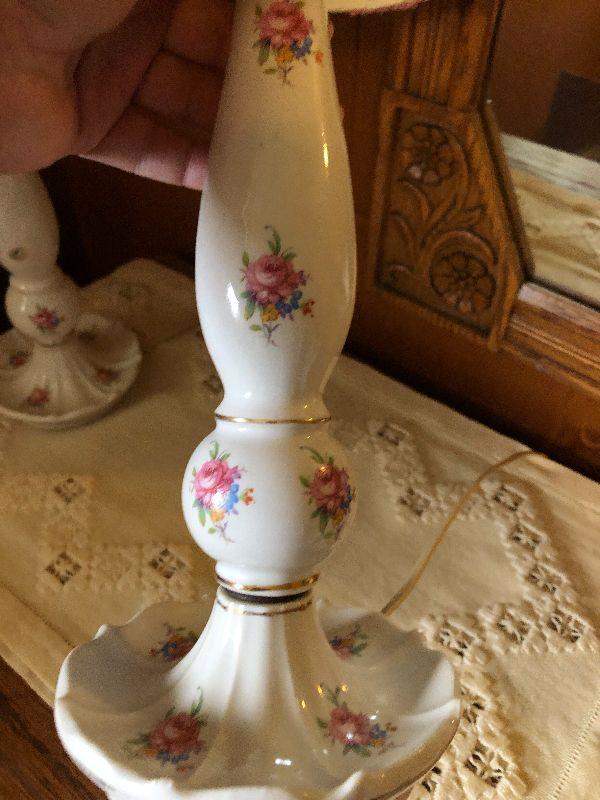 B1: Pair of Rose Floral Bedside Table Lamps with Gold Trim