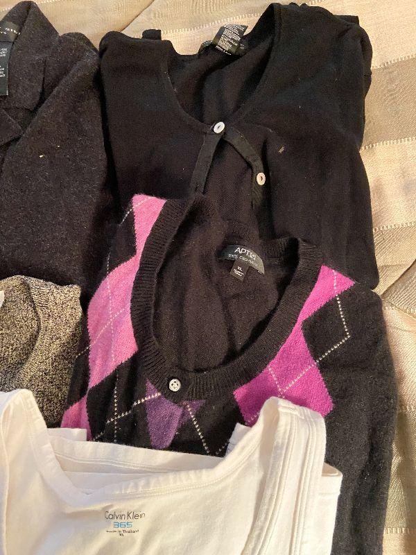 Jacket, sweaters and tank in different colors and brands