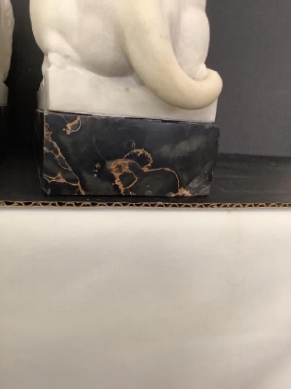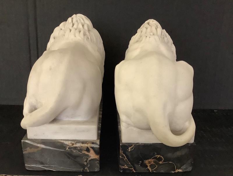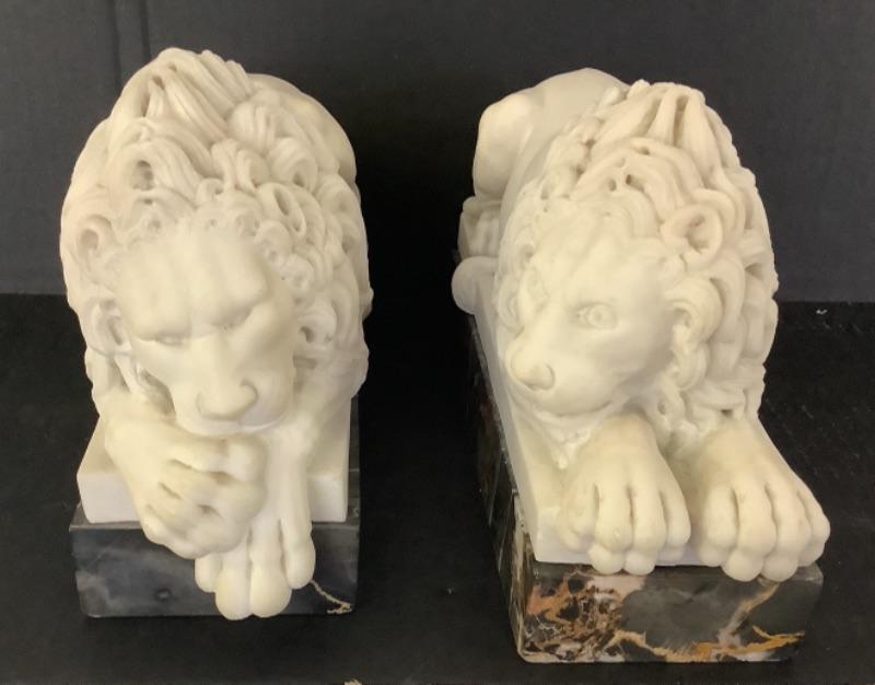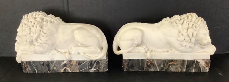 B1033 Pair of Composition Lion Bookends with Marble Base