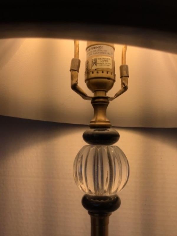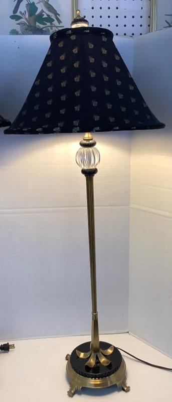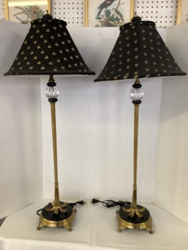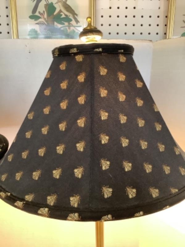 B1034 Pair of Wildwood Brass Lamps with Bumble Bee Lampshades