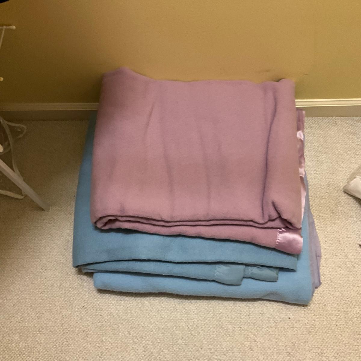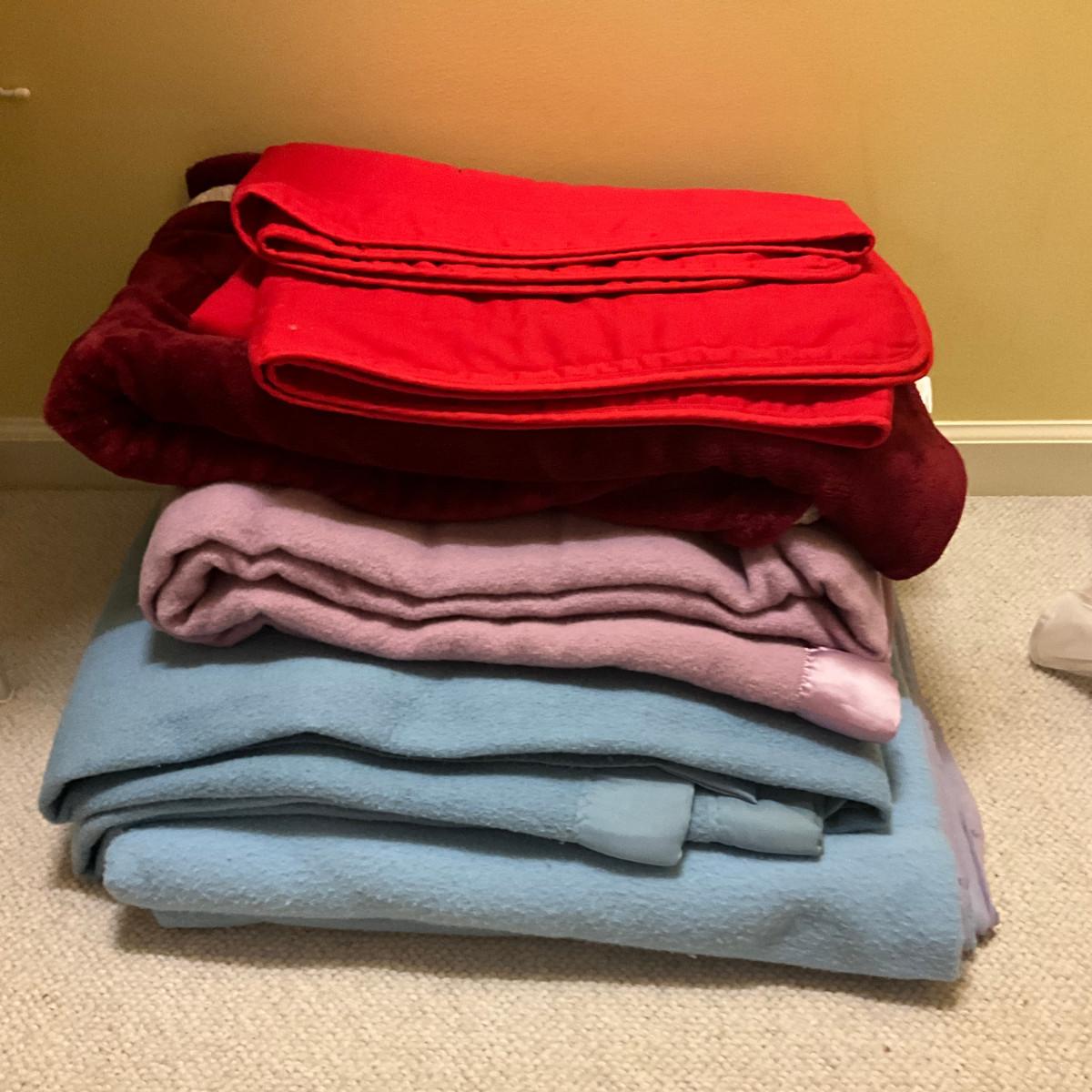 B1044 Lot Of Five Poly-blend Multi-Colored Blankets