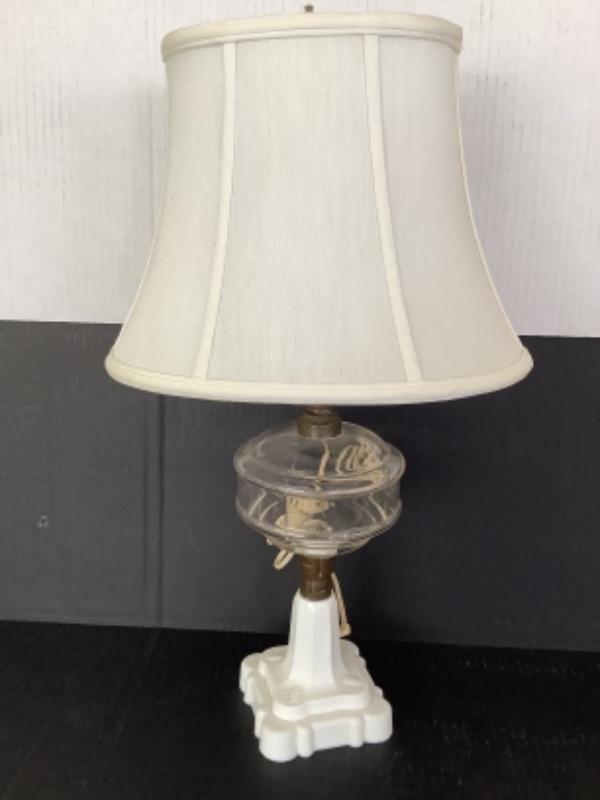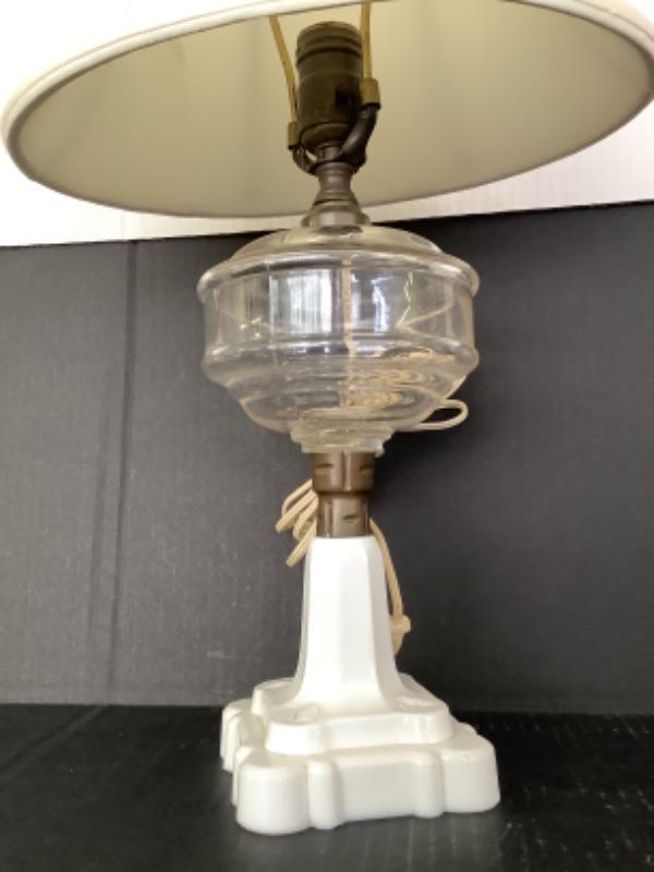 B1045 Vintage Electrified Oil Lamp with Milk Glass Base