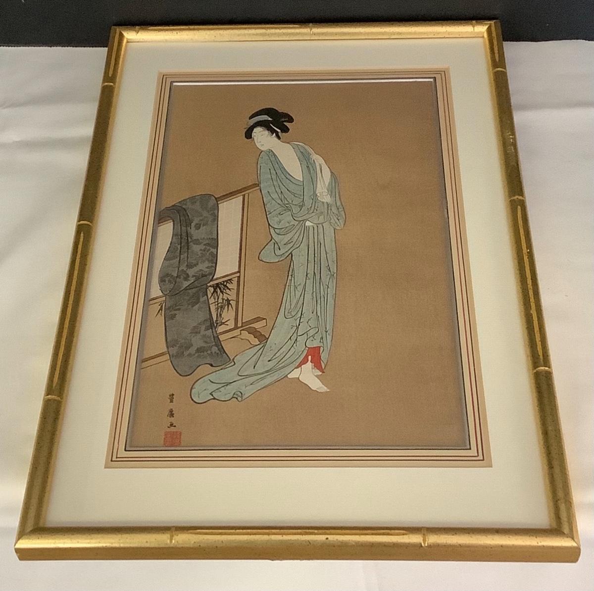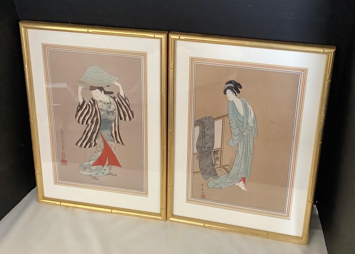 Beauty In Sedge Hat By Morothane Fukuyama and Beauty In Bath Dress By Toyohiro Utahans. Both prints measure 16-1/2” high and 11-1/2” wide