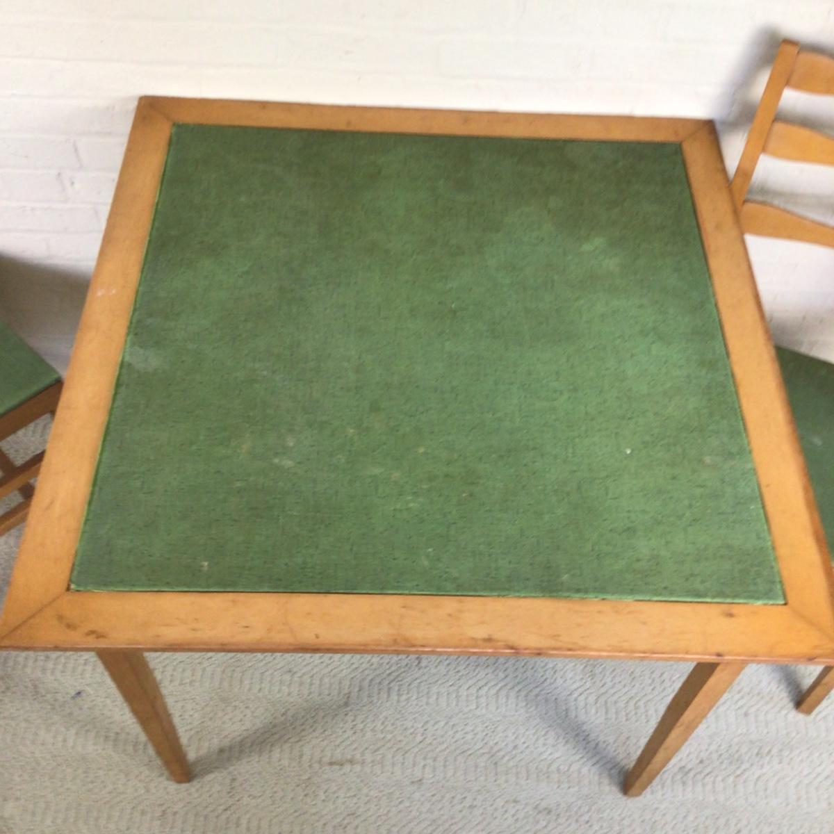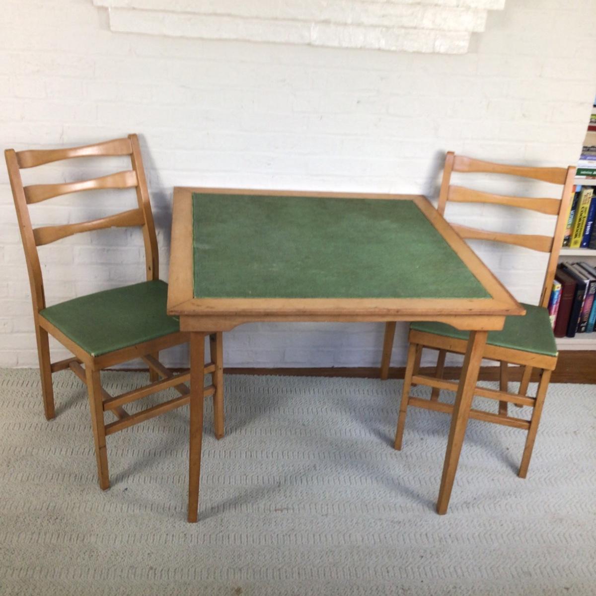 B1080 Vintage Folding Green Card Table & Two Matching Chairs