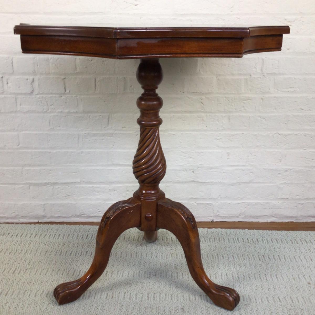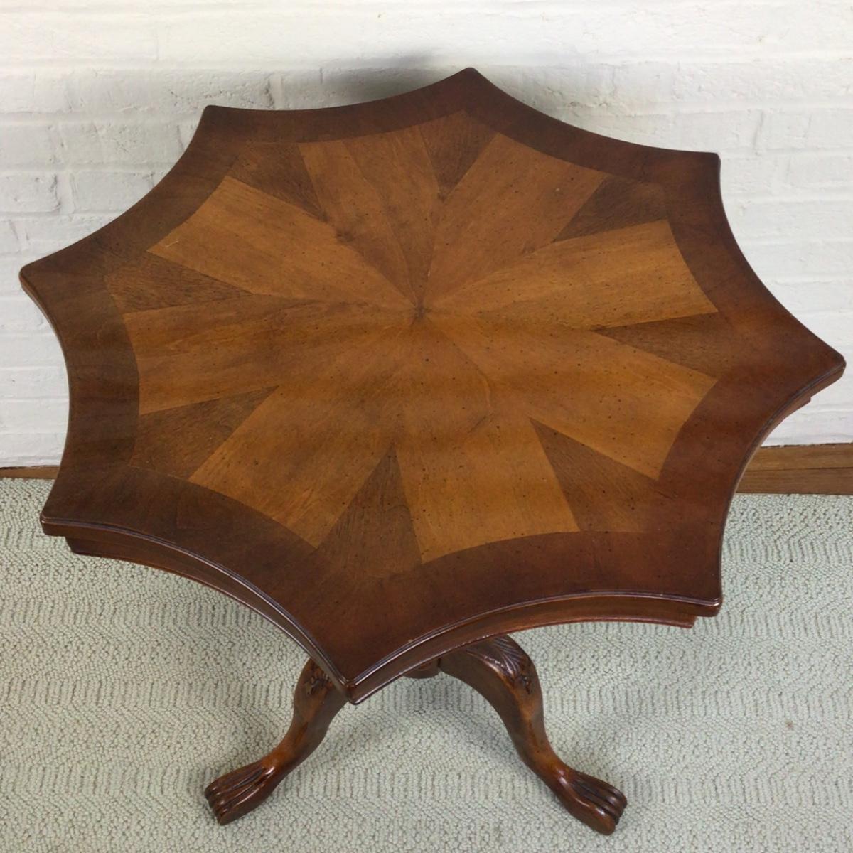 Starburst shape top , carved pedestal base , cherry and Mozambique inlay